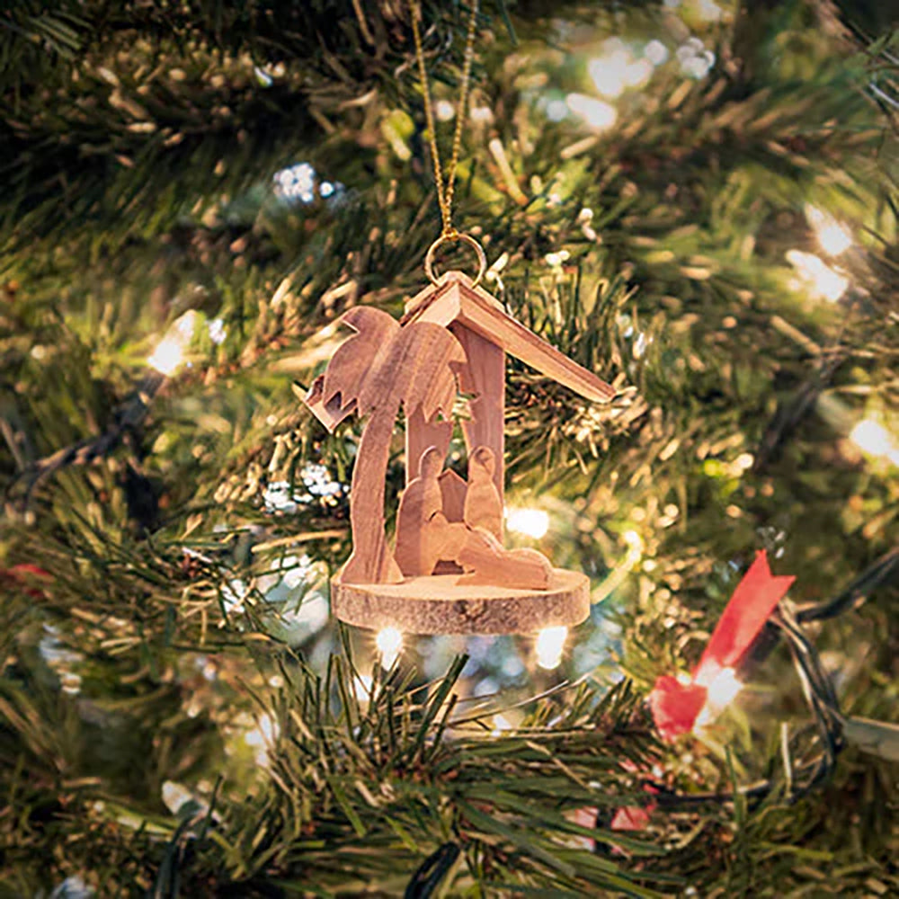 Celebrate the true spirit of Christmas with the Nativity & Star Holy Land Olive Wood Ornament. Handcrafted by local artisans in Bethlehem from sustainably sourced olive wood, each unique piece embodies the sacred birthplace of Christ. Perfect for honoring faith and supporting persecuted Christians, this ornament offers meaningful symbolism this holiday season. Please note natural variations add to its charm.