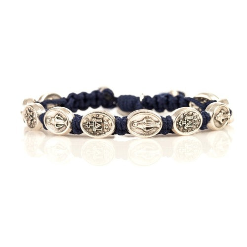 A stylish, reverent accessory that joyfully shares the gift Mary’s loving protection and your devotion to the Miraculous Medal, this Marian bracelet features ten medals woven into a navy macrame' cord. An everlasting style with a personal focus on faith.