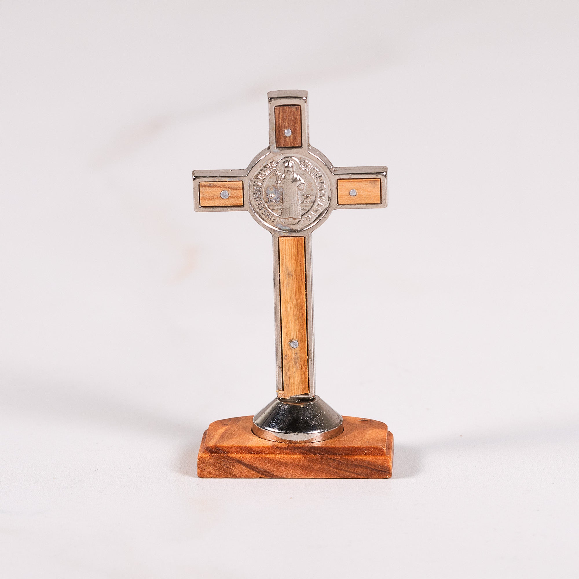 Olive Wood Inlay St. Benedict Desk Crucifix - 3.5"