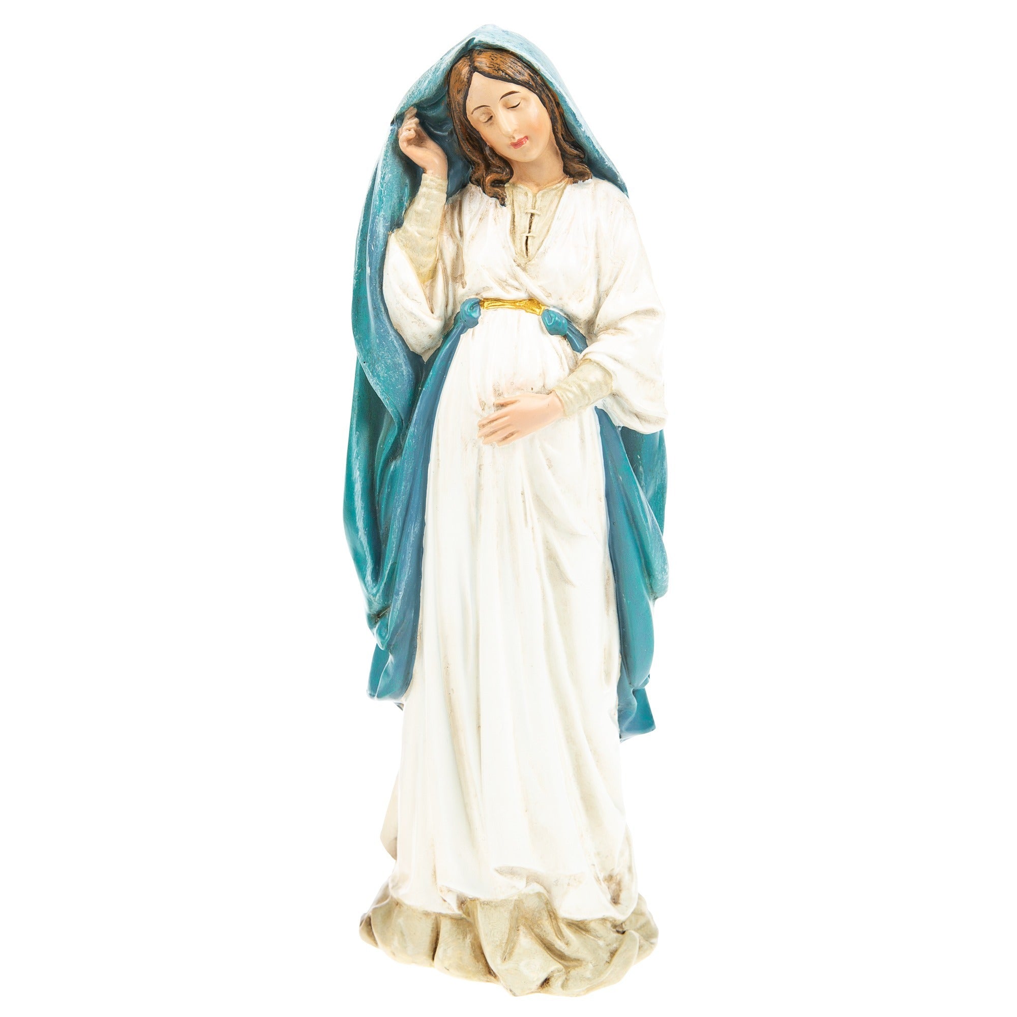 Place on your mantle or on a favorite table and watch the room come to light. This is Mary as you have never seen her before. The expectant Mary statue will be meaningful to you and the many individuals who enter your home as it strikes a personal, universal chord with the observer. It would be difficult to find a more touching gift for a pregnant mother.