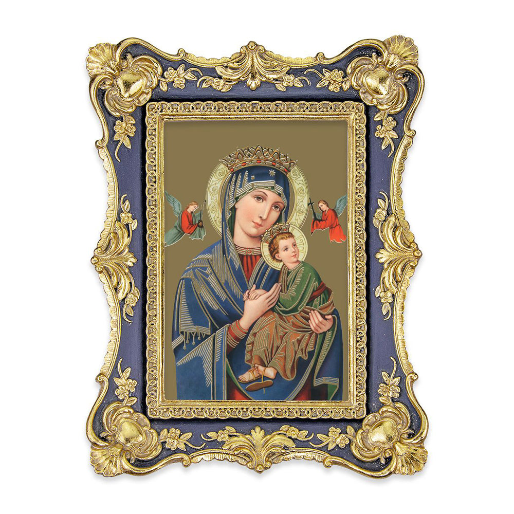 Our Lady of Perpetual Help Print in Dark Blue & Gold Frame - 5" x 7"