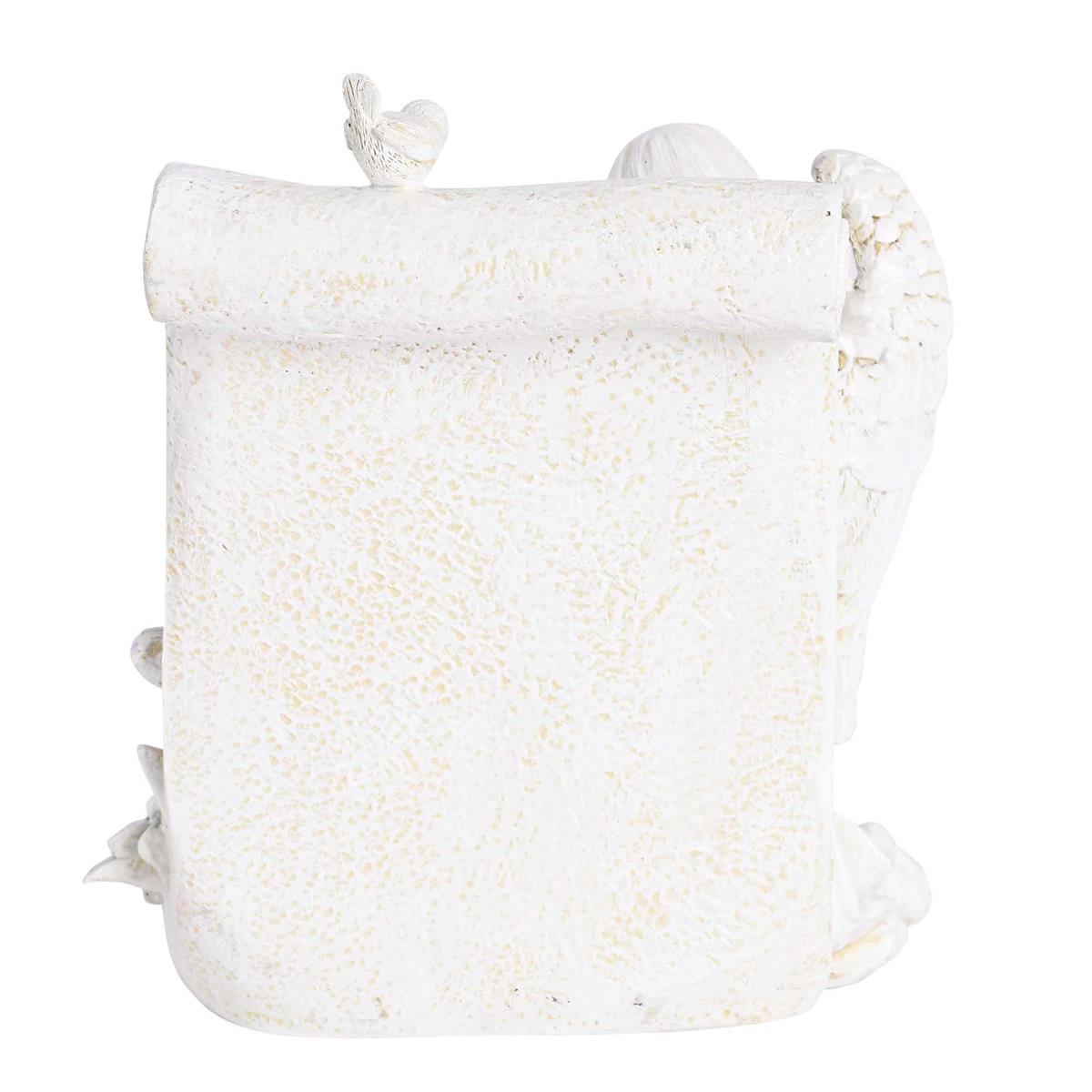 This elegant ceramic angel tea light holder features a kneeling angel surrounded by delicate flowers and birds, with the comforting words of Matthew 11:28. A peaceful accent for prayer, rest, or remembrance. Tealight not included.
