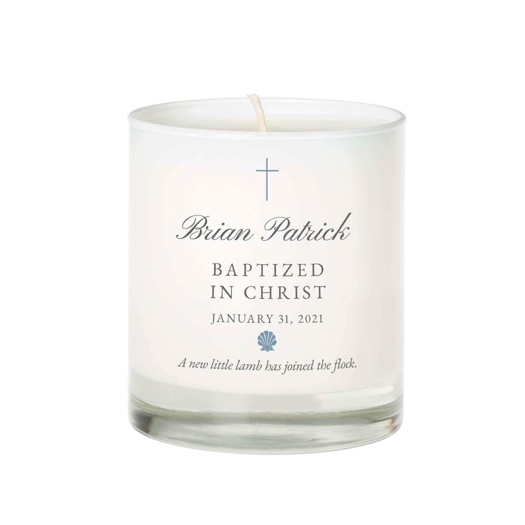 Welcome a new lamb into the flock of the Church with this beautiful 12-oz candle, featuring options of boy or girl designs. With a refreshing linen scent and sturdy glass container, it provides a lovely memorial for the joyful occasion of baptism, and included personalization makes it a truly unique and personal product for a newly baptized or for godparents.
