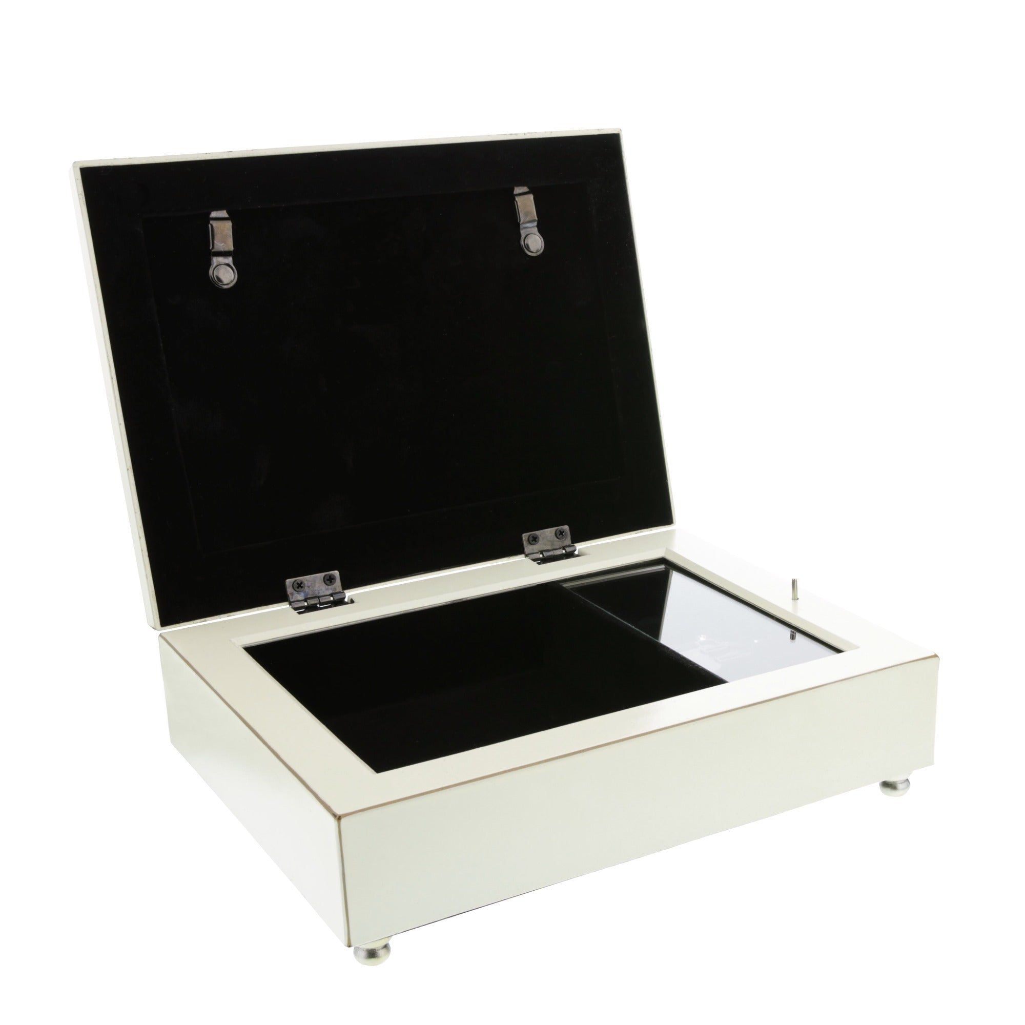 The Personalized Good Night Prayer Music Box for girls features an elegant wood-look design with cheerful personalization. Exclusive to The Catholic Company, this charming keepsake includes a watercolor palette and whimsical animals, making it a delightful accent for any room. Perfect for storing prayer essentials, the box plays "Jesus Loves Me" and encourages a child's journey in faith. Measures 8" x 6" x 2.75".