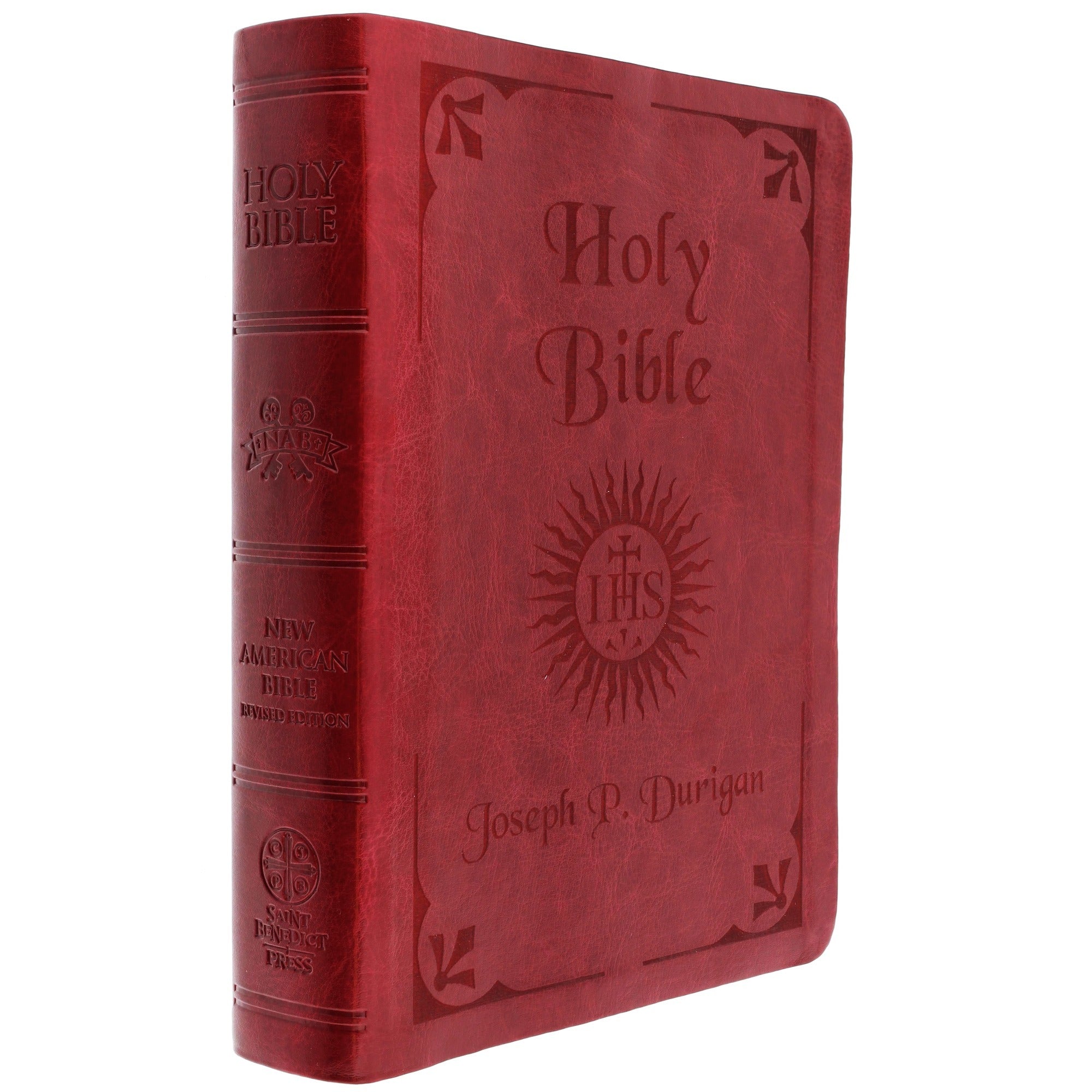 The Personalized IHS Bible features an exclusive design with a red ultrasoft cover and an elegant, readable typeface. Featuring the Holy Name of Jesus sunburst insignia, it's personalized in a complementary font and crafted as a cherished heirloom. The NABRE edition includes extensive footnotes, cross-references, full-color maps, a Catholic prayers manual, and is endorsed by the USCCB for scholarly accuracy.