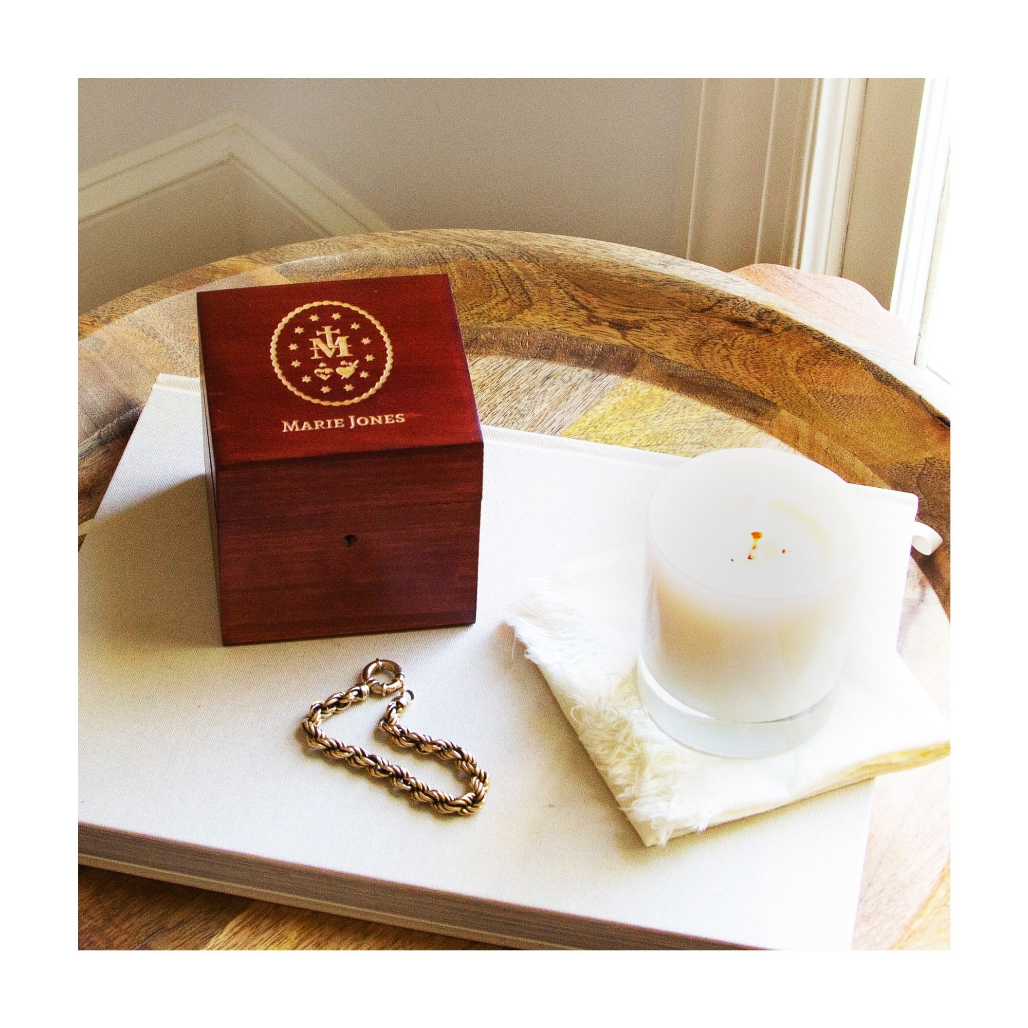 Celebrate devotion to Our Lady with the Personalized Miraculous Medal Rosary Box. Crafted from cherry wood, this 4"x 4" keepsake box features a Miraculous Medal engraving and a fully functioning lock with an old-style brass skeleton key. Personalize it with an initial for a thoughtful gift, exclusively designed by The Catholic Company. Perfect for honoring the Blessed Mother and cherished keepsakes.