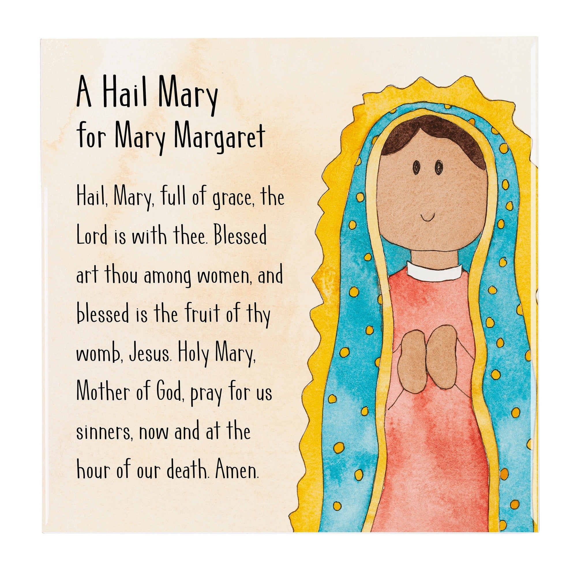 This charming 6x6 glossy ceramic tile showcases a kid-friendly watercolor design of Our Lady of Guadalupe. Perfect for decorating a child's room, it includes personalization and the Hail Mary prayer, encouraging young ones to seek the Blessed Mother's intercession. Exclusively designed by The Catholic Company, it makes a fantastic gift for birthdays or First Communions. Display easel sold separately.