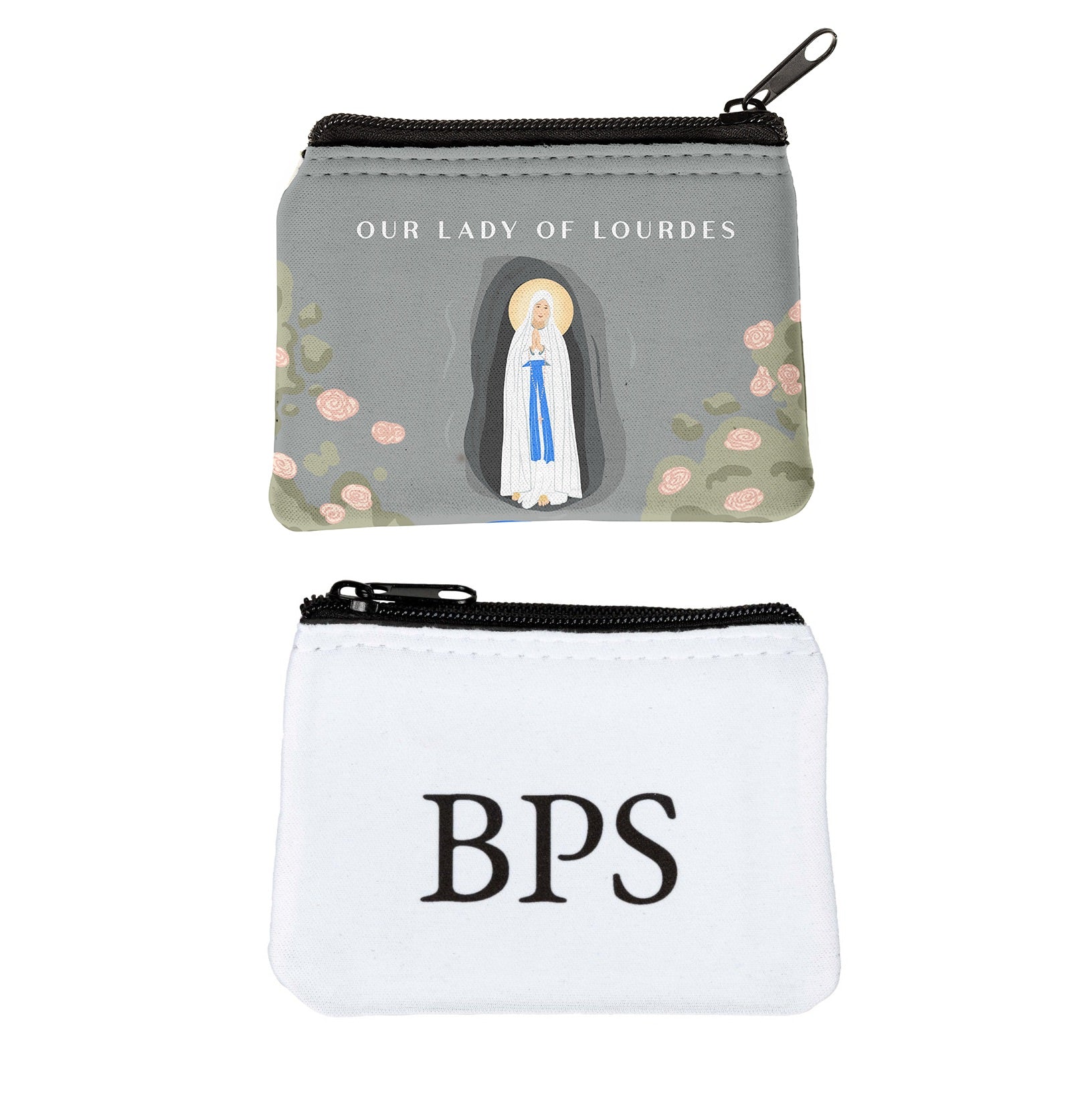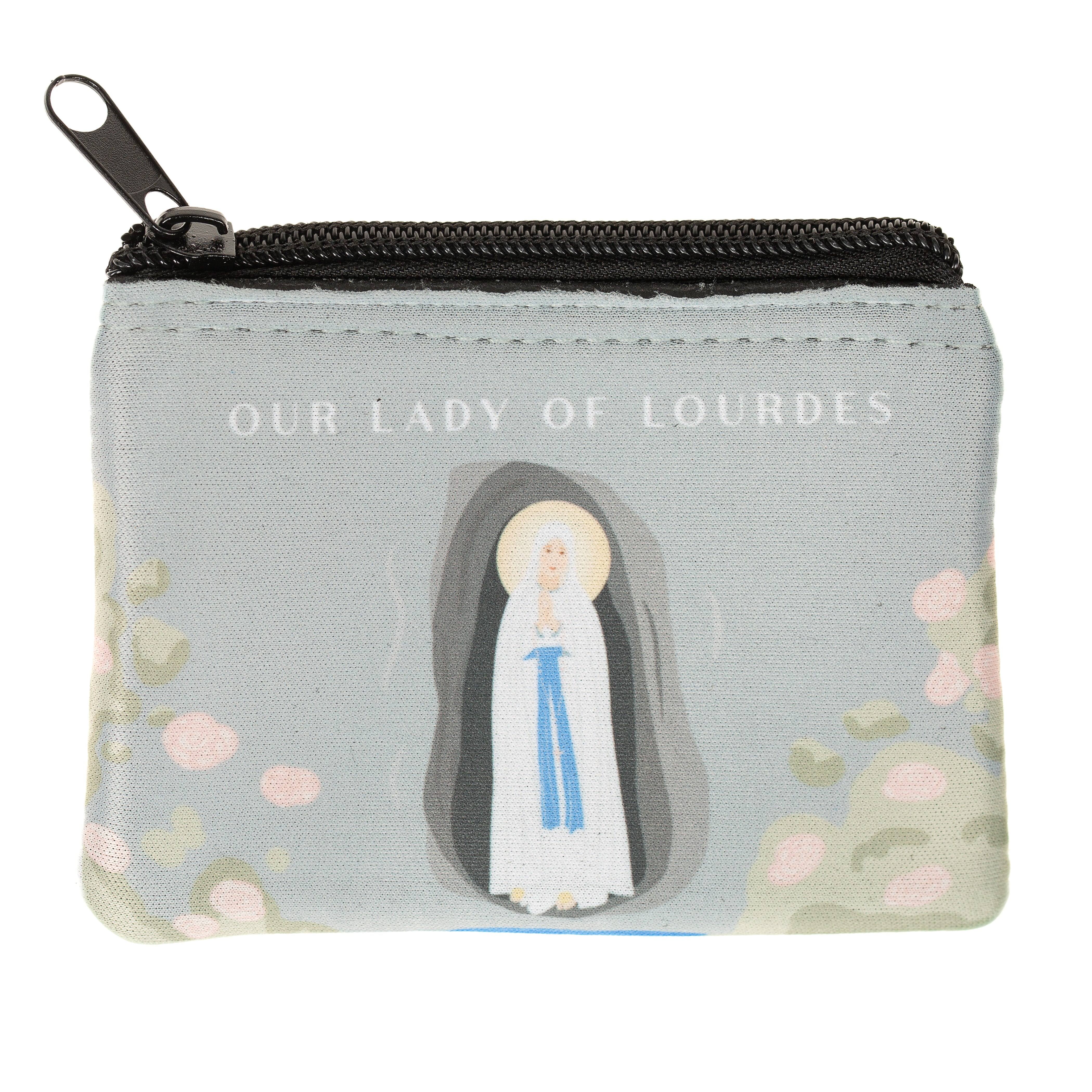 This lovely rosary pouch portrays the apparition of Our Lady of Lourdes to St. Bernadette Soubirous, a series of apparitions which culminated with the creation of the miraculous spring in the small French town. Rosary pouches protect your rosary beads and keep them on hand whenever you need them, and this exclusive case is the perfect size to fit in your pocket, purse, or backpack.