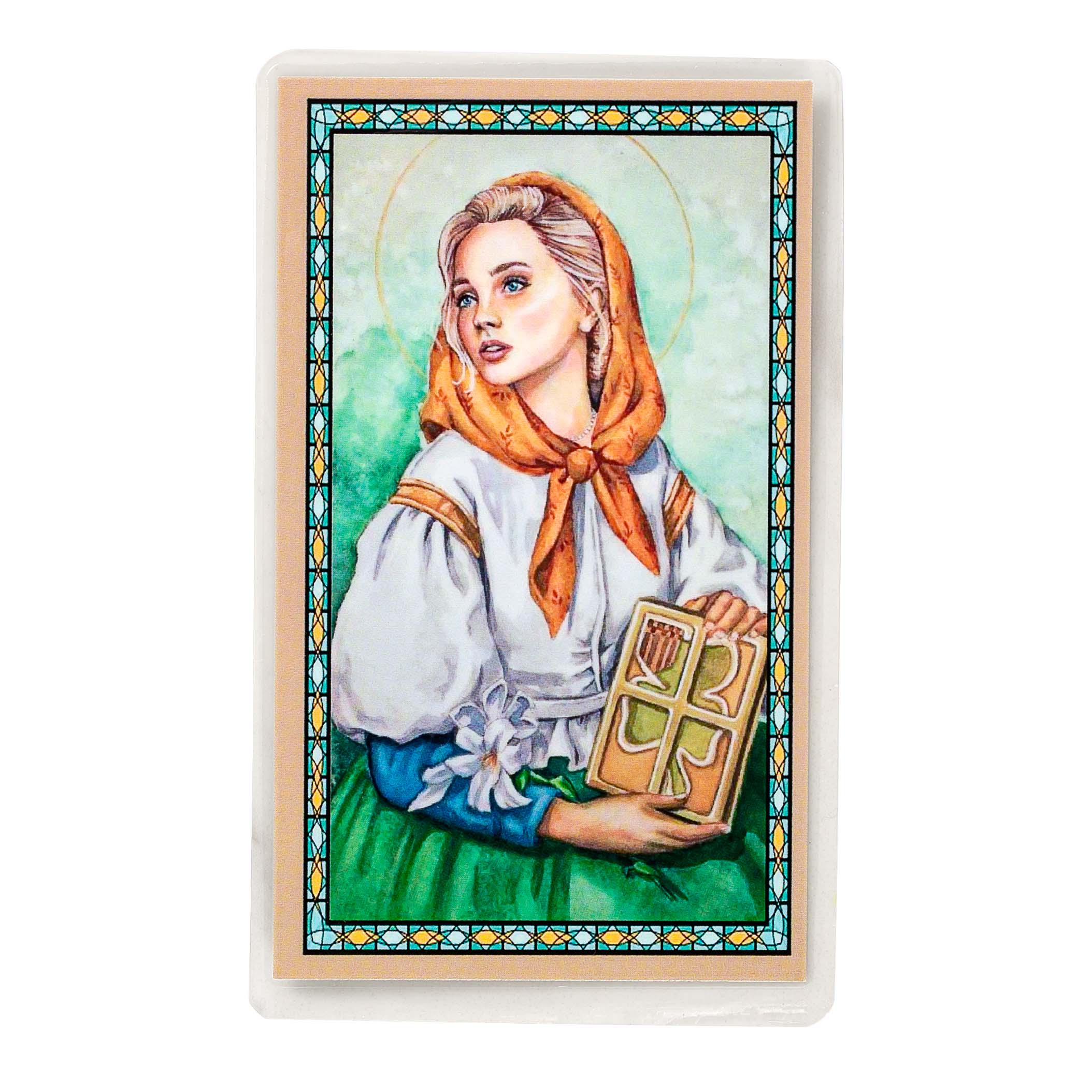 This set features a pewter St. Dymphna medal on an 18" silvertone chain, accompanied by a laminated prayer card. Perfectly packaged in a polybag, it's an ideal gift for those seeking protection and comfort.aint of mental health, this beautifully packaged gift comes polybagged for convenience.