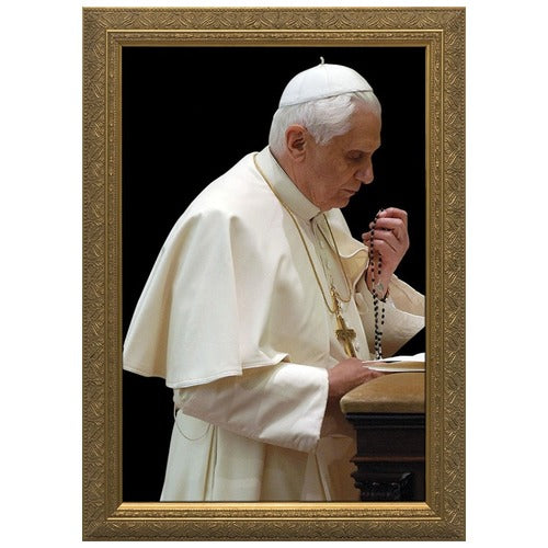 Pope Benedict Praying Rosary in Gold Frame - 11" x 16"