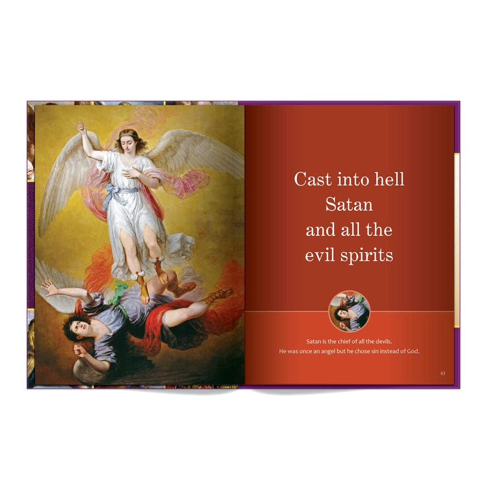 Through beautiful Sacred Art, this picture book will help Catholic children learn these prayers while seeing magnificent artwork. On each page, there is a phrase of the prayers with a short explanation of what it means at the bottom. Its gentle catechesis, line-by-line exploration of the Guardian Angel and St. Michael prayers, and appealing artwork make it a perfect companion for preschoolers through second graders.