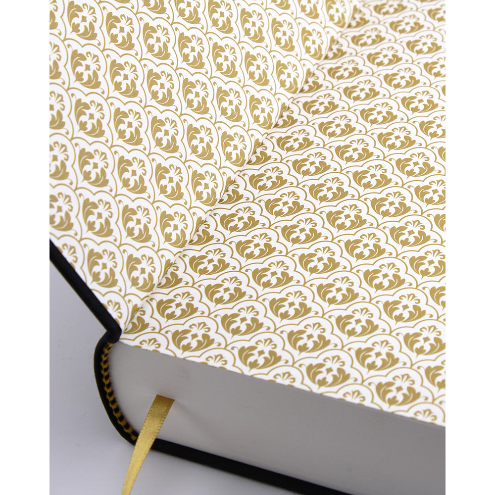 - Gold foiling, hardcover, satin ribbon marker