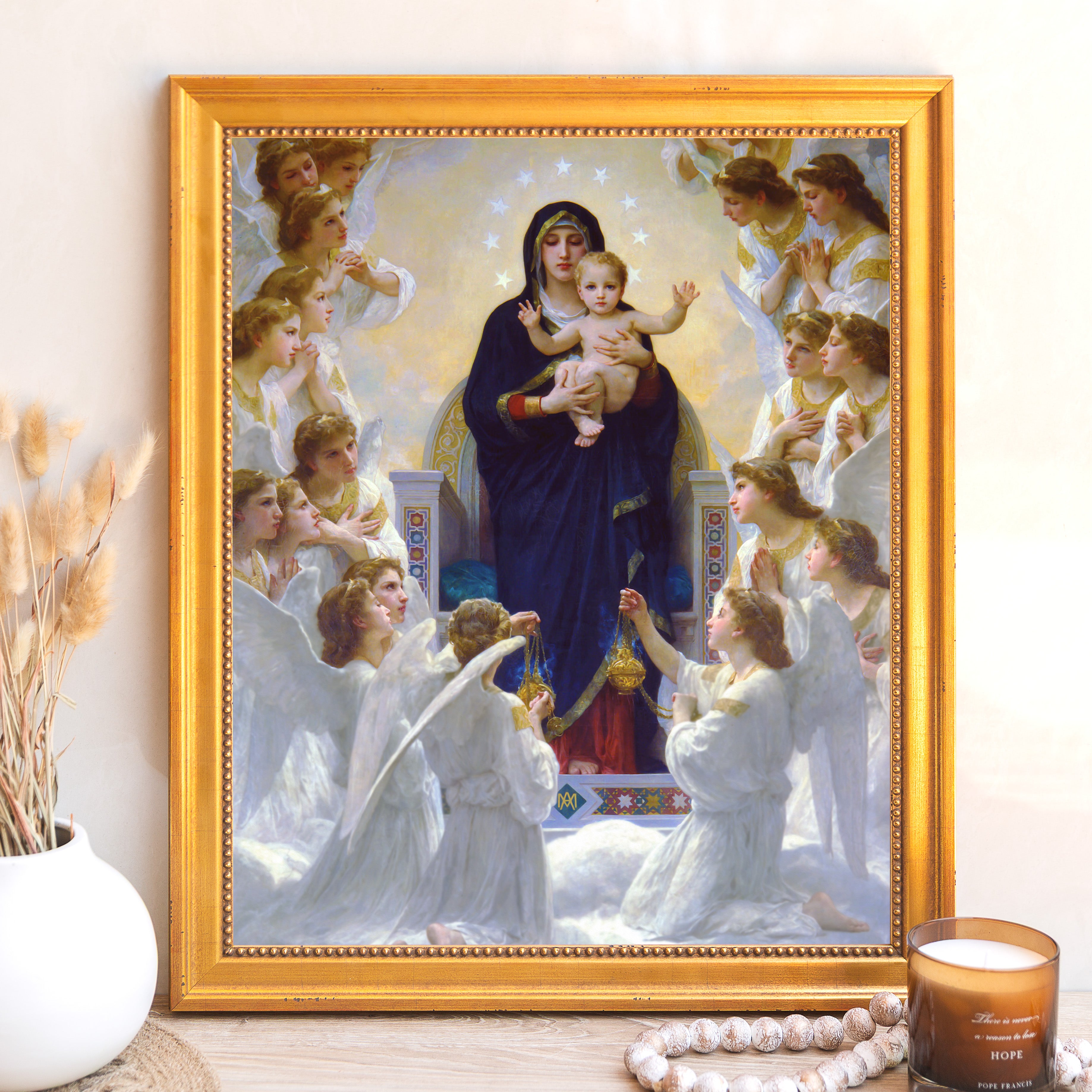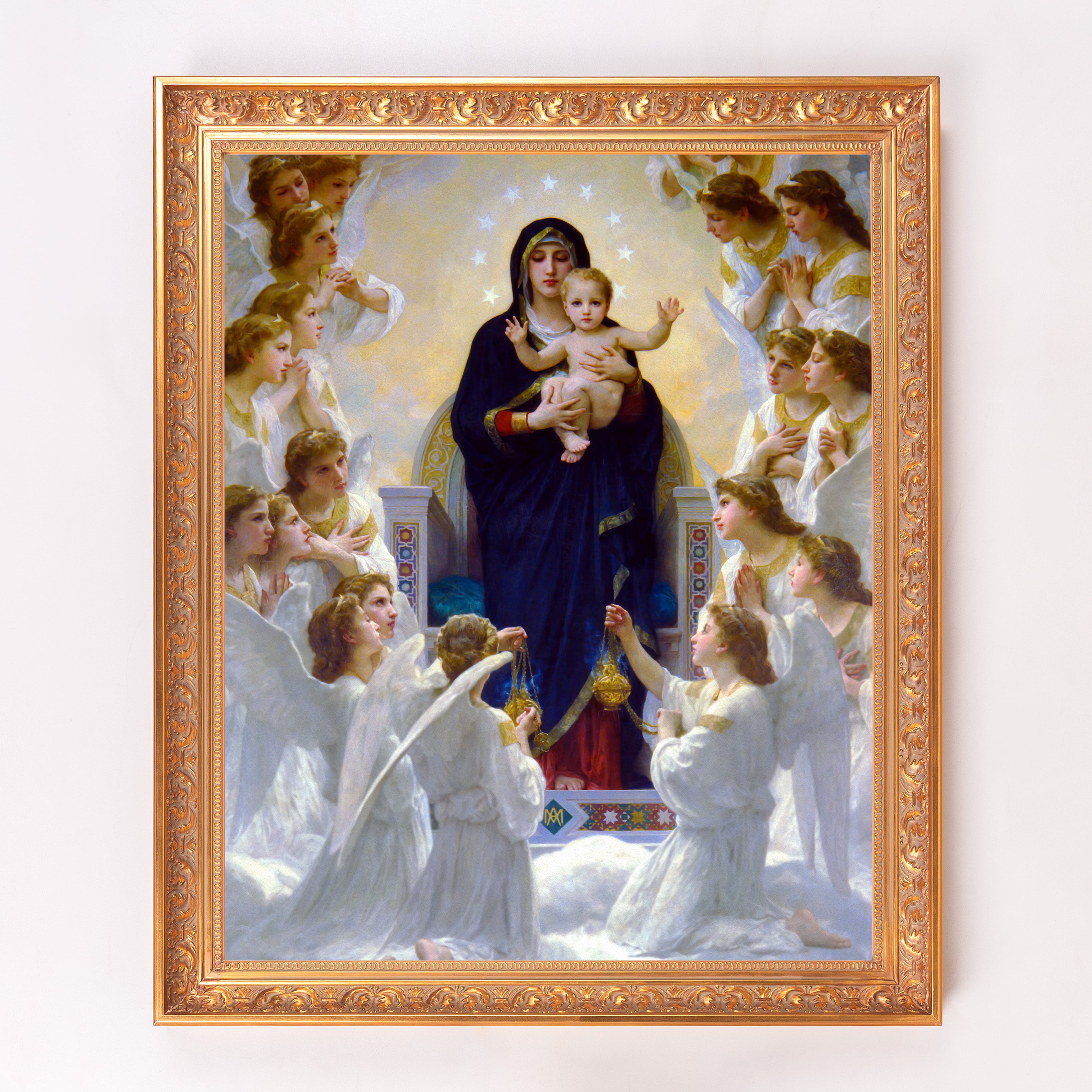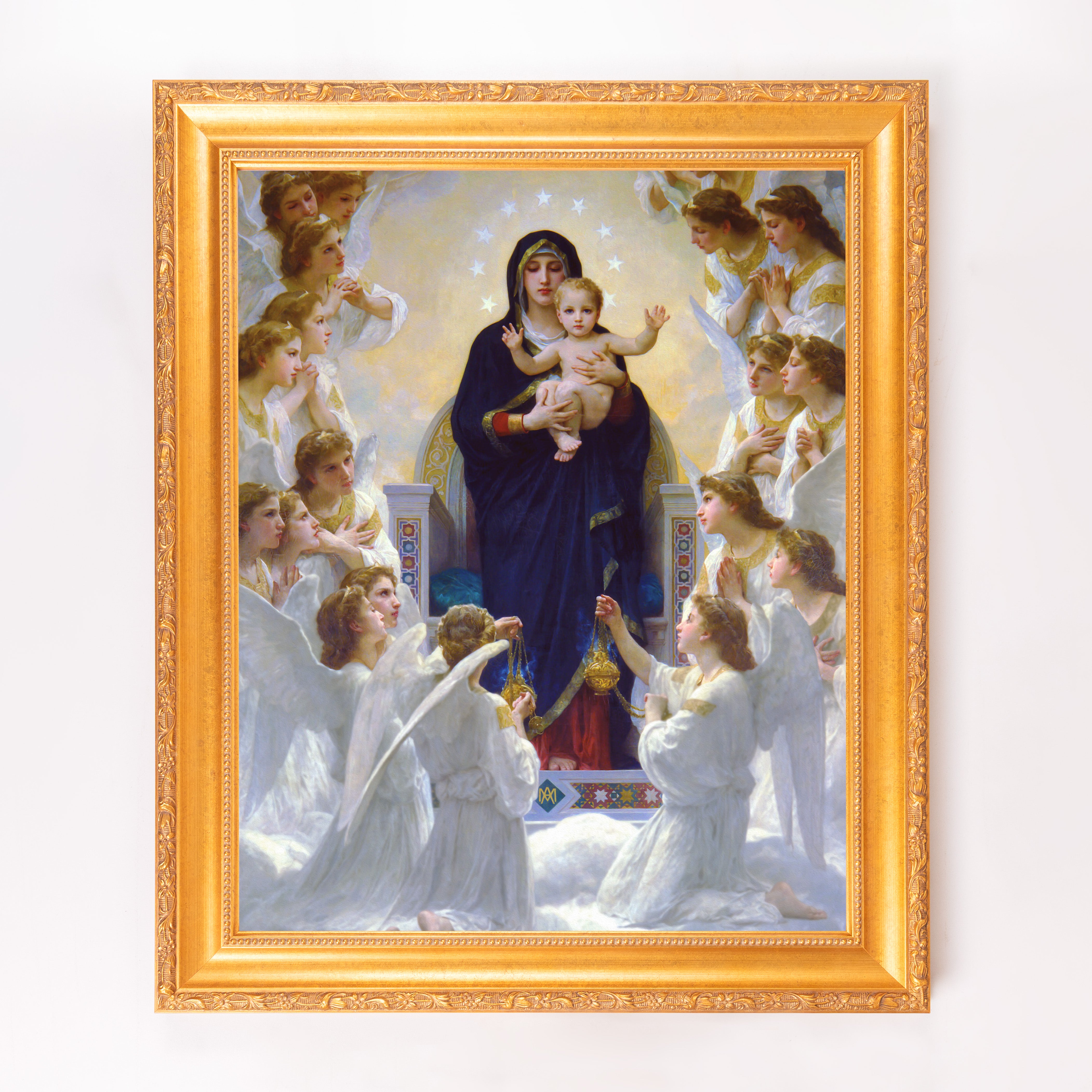 Discover the Queen of Angels Framed Canvas from the Sacred Signature Collection. Featuring William-Adolphe Bouguereau's 1881 masterpiece, this artwork is hand-crafted in-house with exquisite frames and gallery-quality printing, capturing its beauty and depth. Perfect for enhancing any sacred space or as a cherished gift, this exclusive piece is available only at The Catholic Company.