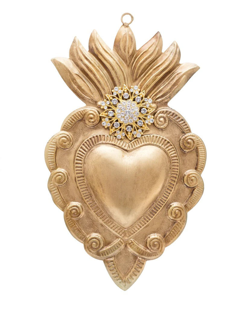 • Bright gold Sacred Heart Milagro wall sculpture