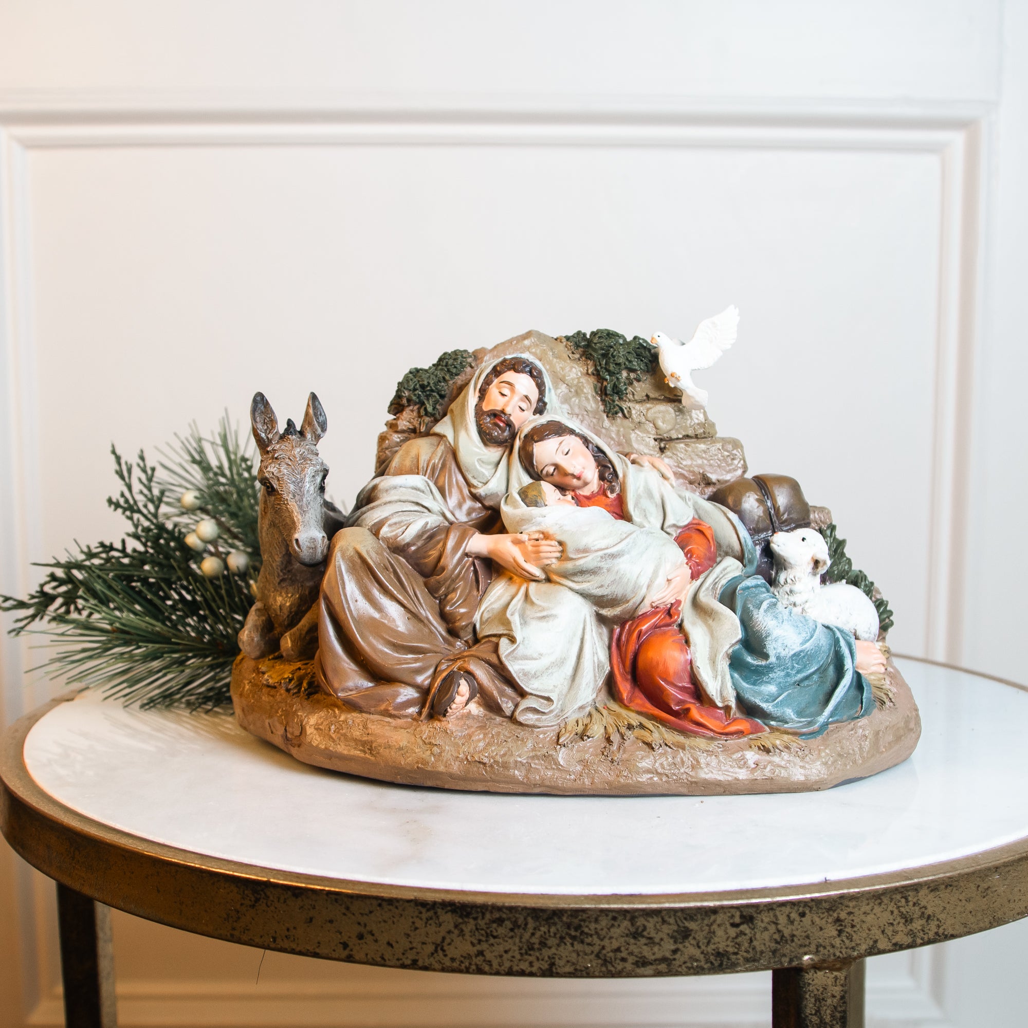 This heartwarming Resting Holy Family Nativity Scene beautifully captures the essence of "Silent Night," depicting the Holy Family peacefully asleep. Part of the cherished Joseph's Studio collection, this piece measures 6" x 9.5" x 5.75" and is crafted from resin, making it a perfect addition to any holiday décor.