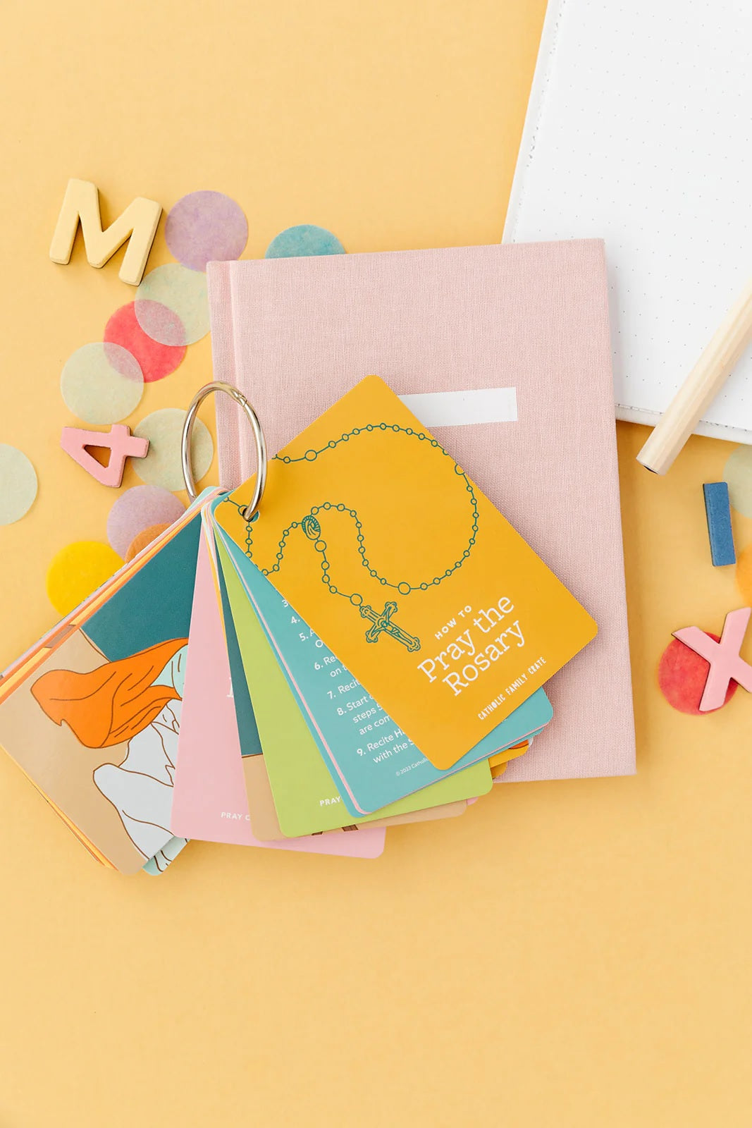 The Rosary Flip Card Ring offers a delightful way for children to learn Catholic rosary prayers and symbols. Featuring 27 illustrated prayer cards with easy-to-read text, it serves as both an educational tool and a fun activity. Secured on a metal ring, it provides interactive learning during quiet time or family activities. A charming gift idea for Catholic kids!