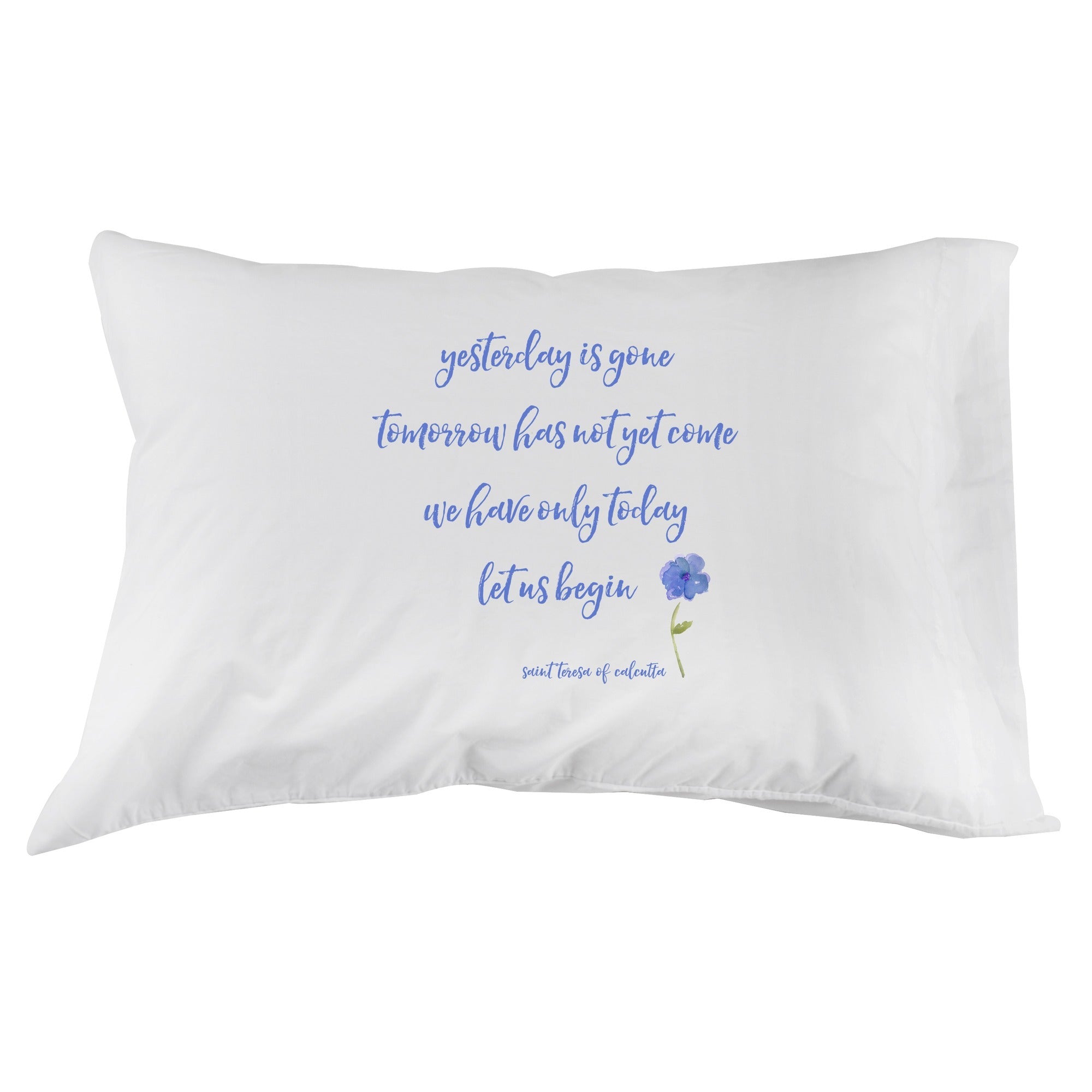 Inspiration has never looked so lovely! This charming pillowcase charges us to begin each new day with positive faith and energy. How better to wake up than with a call to action from Mother Teresa!