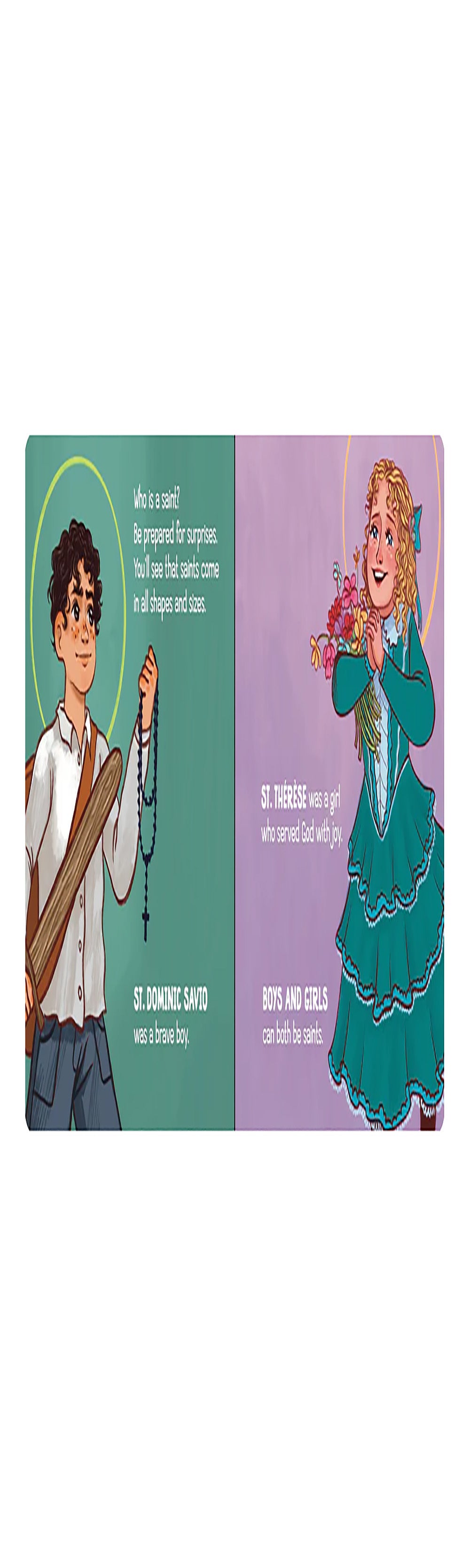 This cheerful board book introduces little ones to saints of all kinds and encourages them to see that they, too, can be saints. With rhyming text and colorful illustrations, it celebrates holiness in every shape and size—perfect for toddlers and early readers discovering the joy of the Catholic faith.