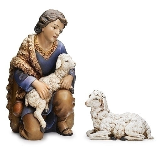 Enhance your 19" Scale Nativity Scene with this exquisite 2-piece set from Joseph's Studio, featuring a shepherd tenderly holding a lamb and a reclined lamb. Crafted with meticulous detail and vibrant colors, these resin/stone figures are perfect for creating a heartfelt display, whether in your home or larger spaces like an office or parish.