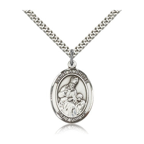 St. Ambrose Pendant with Chain, Bliss, Sterling Silver