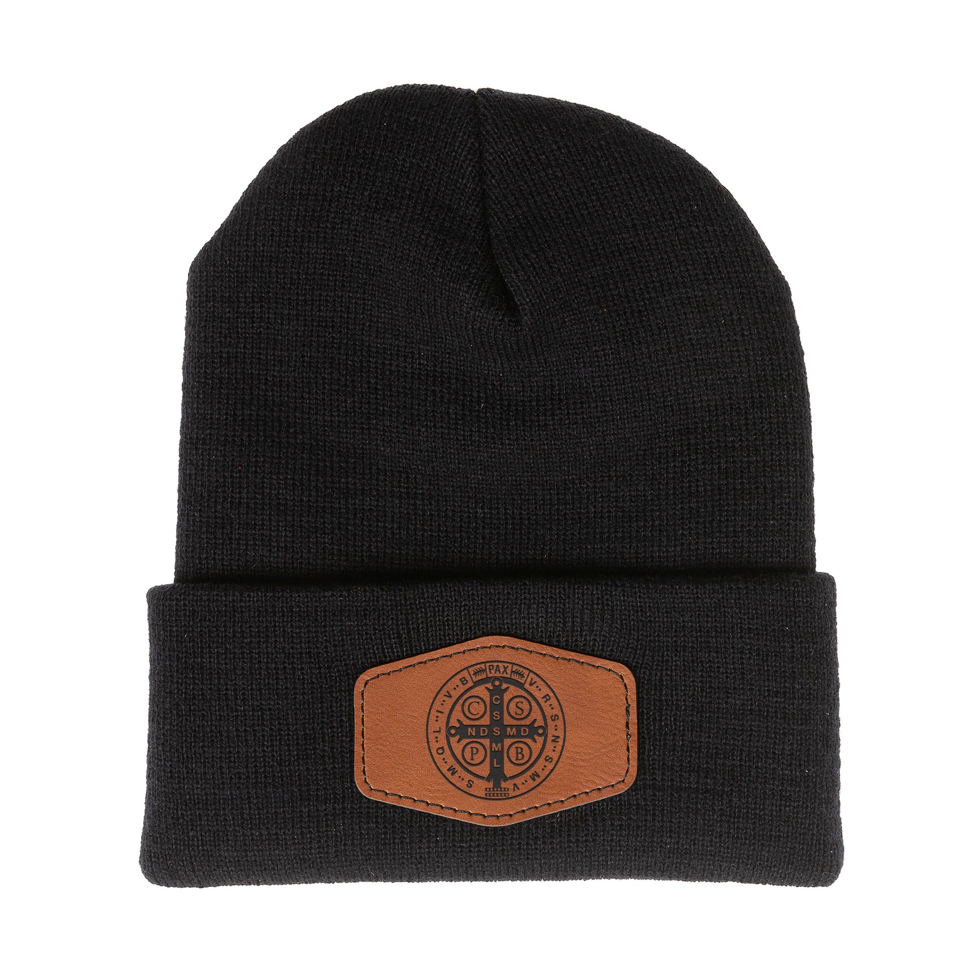 The St. Benedict Leather Patch Beanie is a high-quality, hypoallergenic knit hat designed and handmade exclusively at The Catholic Company. Featuring a stylish caramel brown leatherette patch with a St. Benedict Medal image, this deep black beanie offers warmth, style, and a quiet proclamation of faith. It's a perfect and practical gift for him, offering protection and devotion. Hand wash cold and air dry.