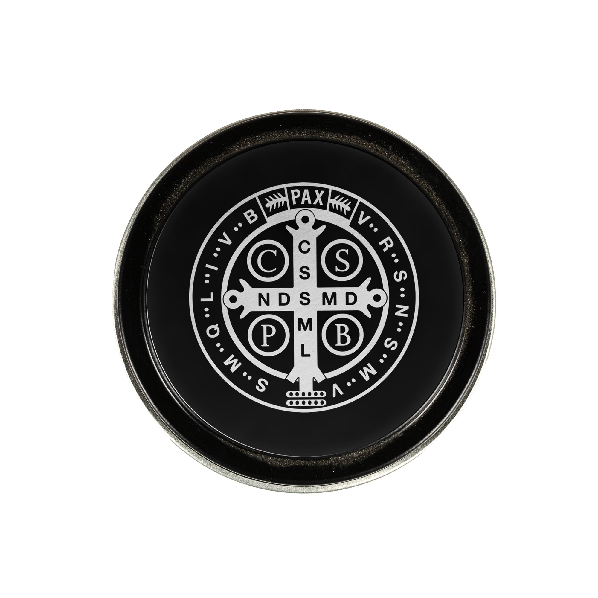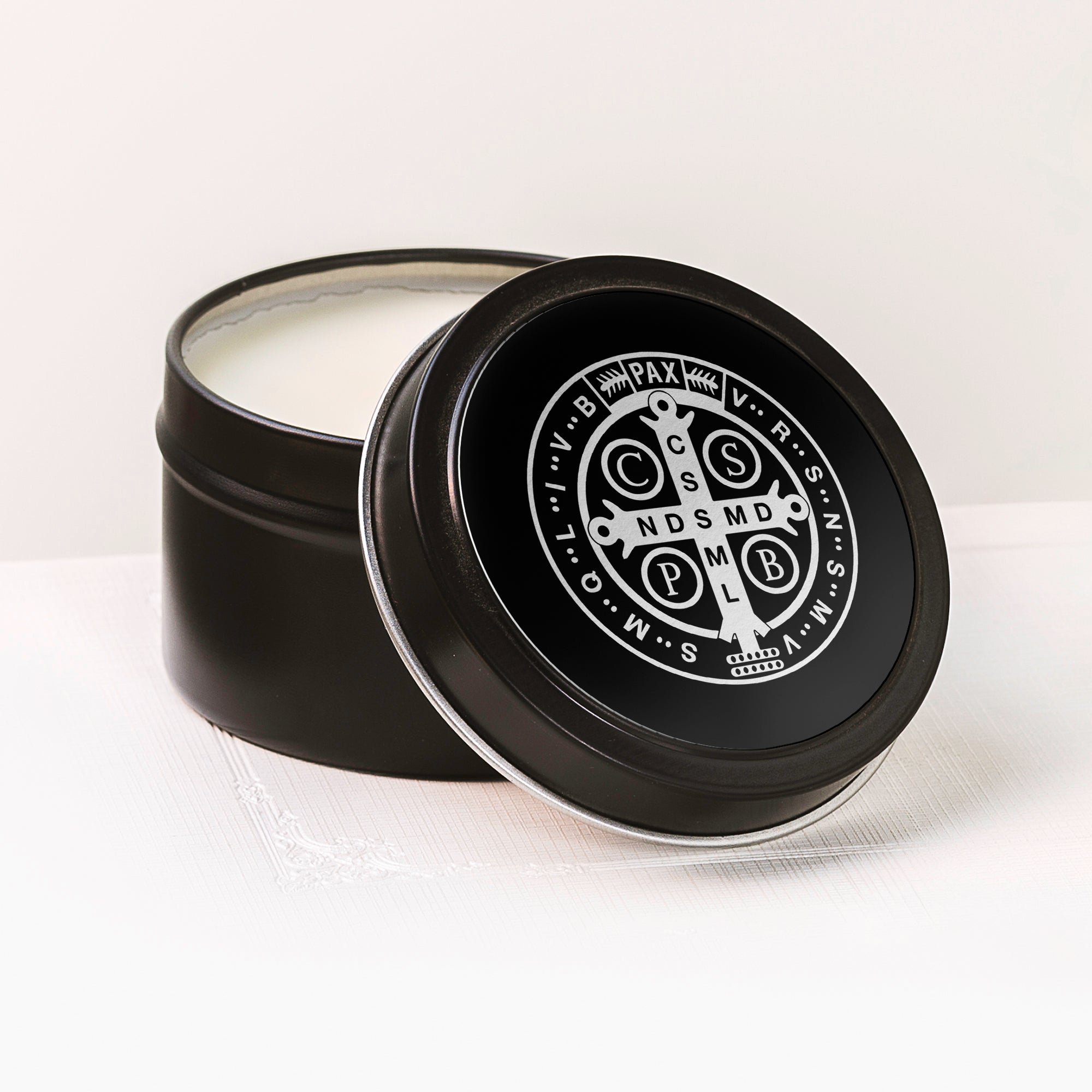 The St. Benedict Medal Candle Tin offers a warm, woodsy scent in an elegant matte black tin adorned with Jubilee Medal artwork. Perfect for prayer, relaxation, or decor, this 6 oz. soy coconut wax candle invokes the intercession of St. Benedict. It's an ideal gift for travelers or loved ones, bringing peace and grace to any space. Exclusively designed by The Catholic Company.