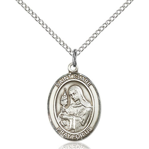 Sterling Silver St. Clare of Assisi Pendant on a Sterling Silver Lite Curb, 18" Chain with clasp. Size: 3/4 x 1/2 inches, Patronage: Eyes/Television