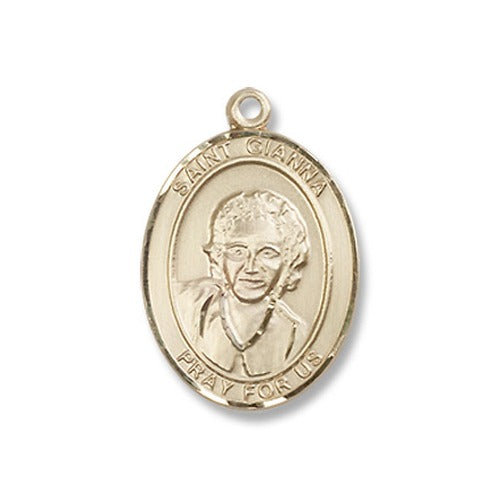 14kt Gold Filled St. Gianna pendant, comes on an 18" 14kt gold-filled lite curb chain. The pendant measures 3/4 x 1/2" and comes gift boxed.