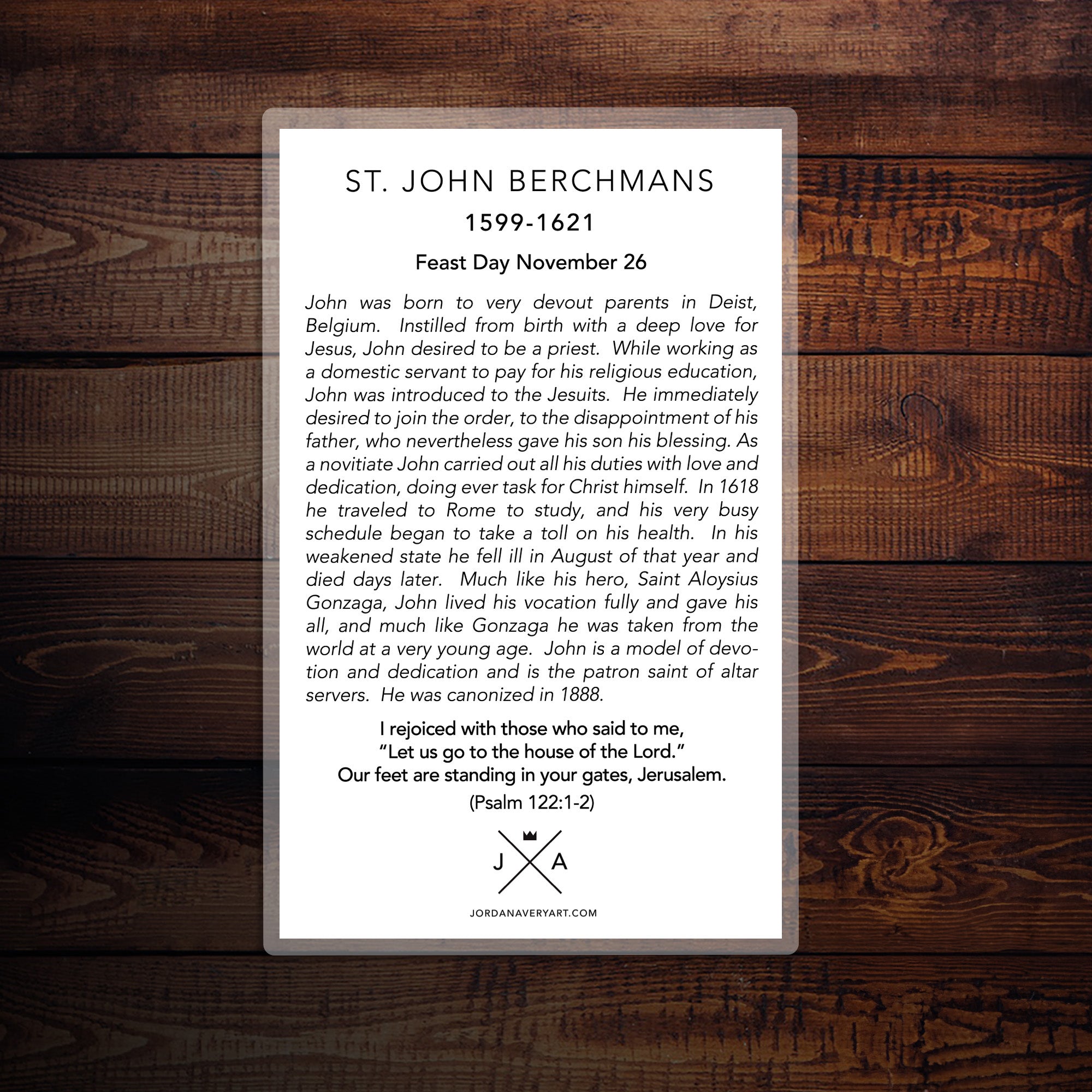 St. John Berchmans Large Prayer Card - Patron of Altar Servers