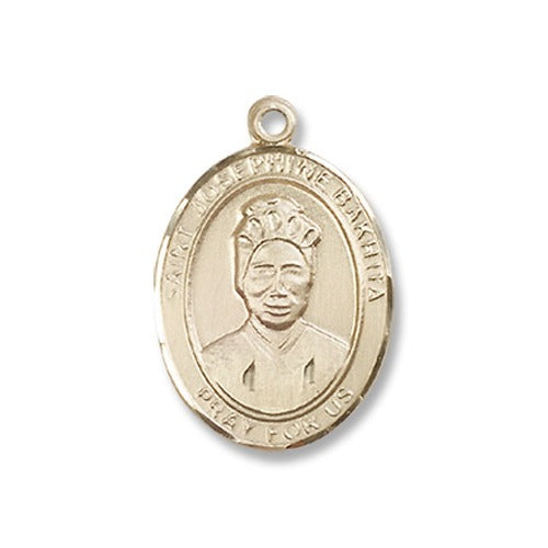 14kt Gold Filled St. Josephine Bakhita pendant, comes on an 18" 14kt gold-filled lite curb chain. The pendant measures 3/4 x 1/2" and comes gift boxed.
