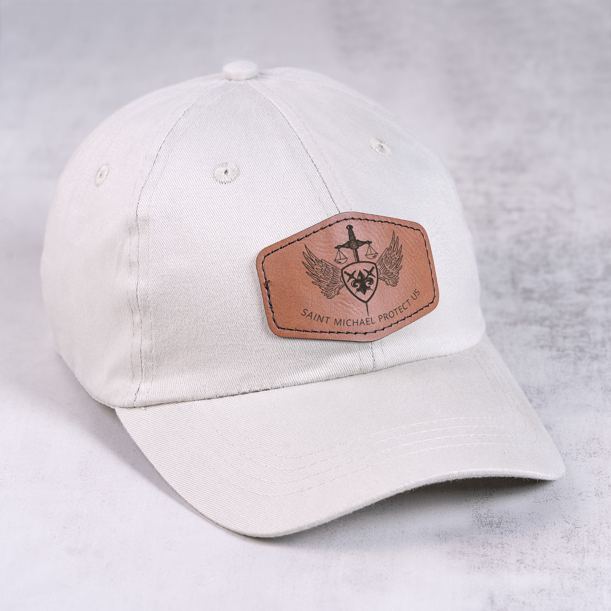 This St. Michael Leather Patch Ball Cap offers a blend of style and faith, featuring a stone-colored low-profile design with a leatherette patch displaying St. Michael the Archangel. Exclusively handmade by The Catholic Company, it's an ideal gift for him. With a comfortable fit, it's perfect for any casual outing and a testament to personal belief. Adjustable, one size fits most.