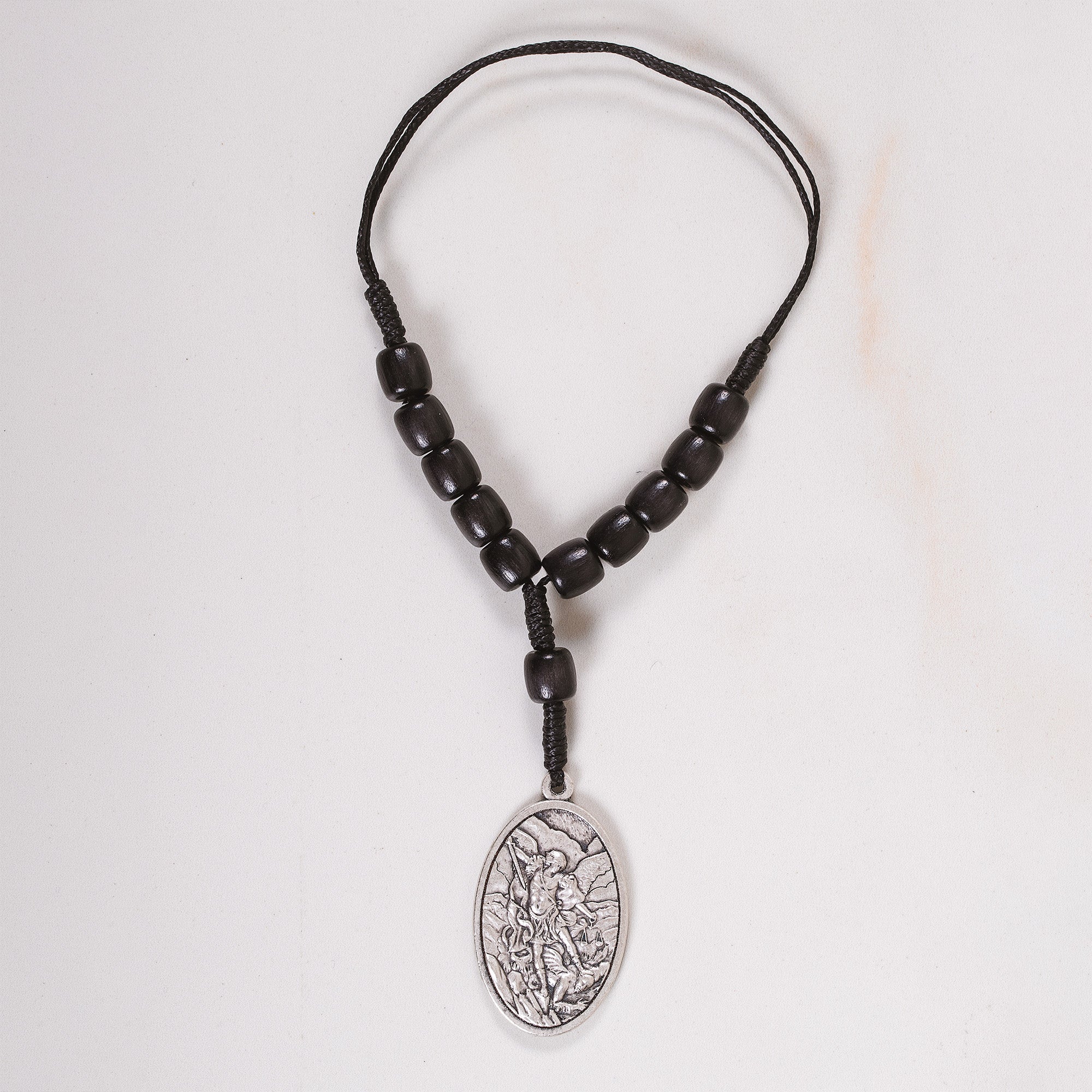 The St. Michael One Decade Rosary/Blessing Beads is an elegant and durable accessory featuring large black wooden beads and a powerful St. Michael medal. Ideal for home, car, or on-the-go, it serves as a reminder of protection and prayer. A thoughtful gift, this Italian-made rosary ensures you stay under the care of Our Lady and the Prince of Angels.