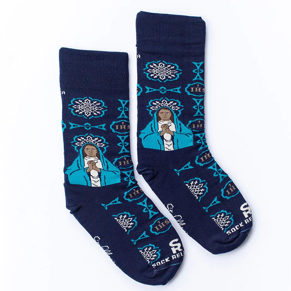 Celebrate your faith with St. Monica Adult Socks, showcasing vivid colors inspired by traditional Algerian textiles. Featuring St. Monica in prayer, these socks are a joyful tribute to her perseverance and devotion. Perfect for daily or dressy occasions, they serve as an inspirational reminder to persist in prayer. A unique gift for Catholics, one size fits most adults.
