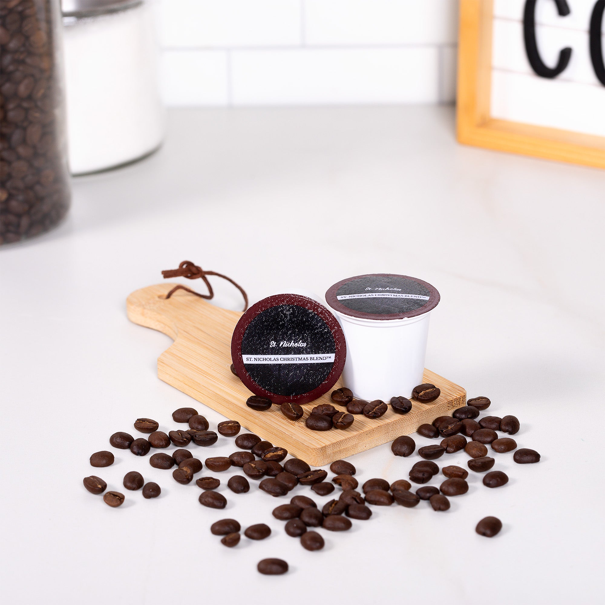 Quickly and easily brew a delicious cup of St. Nicholas Christmas Blend