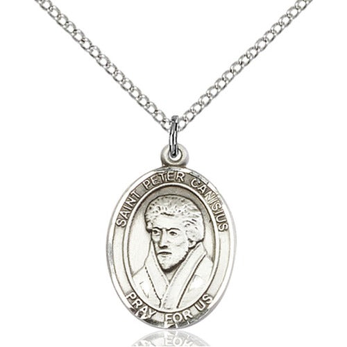 Sterling Silver St. Peter Canisius Pendant on a 18 inch Sterling Silver Curb, 18" Chain with clasp. Size: 3/4 x 1/2 inches, Patronage: Catholic Press/Germany