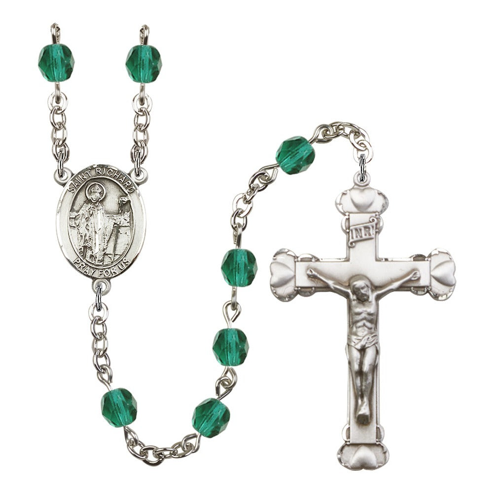 Silver Finish Rosary features 6mm teal Czech Fire Polished glass beads. The centerpiece features a St. Richard medal. Zircon is the birthstone color for December.