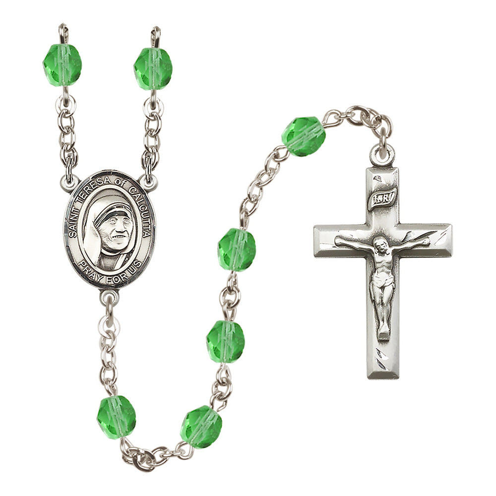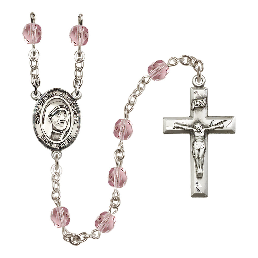 The St. Teresa of Calcutta Crystal Birthstone Rosary is a beautiful, hand-crafted piece made in the U.S.A. Choose from multiple birthstone colors to reflect your personal touch. Featuring faceted 6mm Czech fire-polished beads and a special Saint Teresa of Calcutta lead-free pewter medal, this rosary combines elegance with devotion. With rhodium-plated, tarnish-resistant wire, it makes a meaningful gift for her.