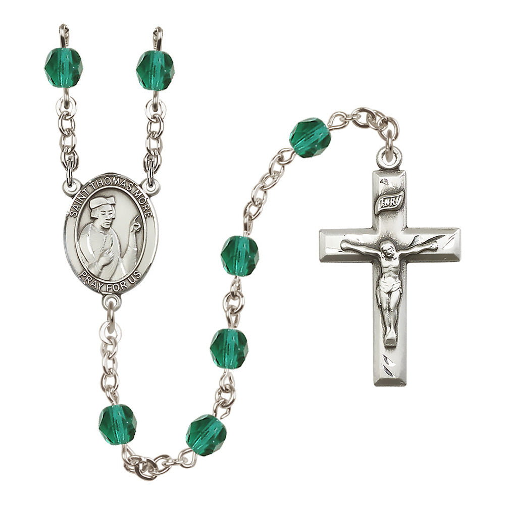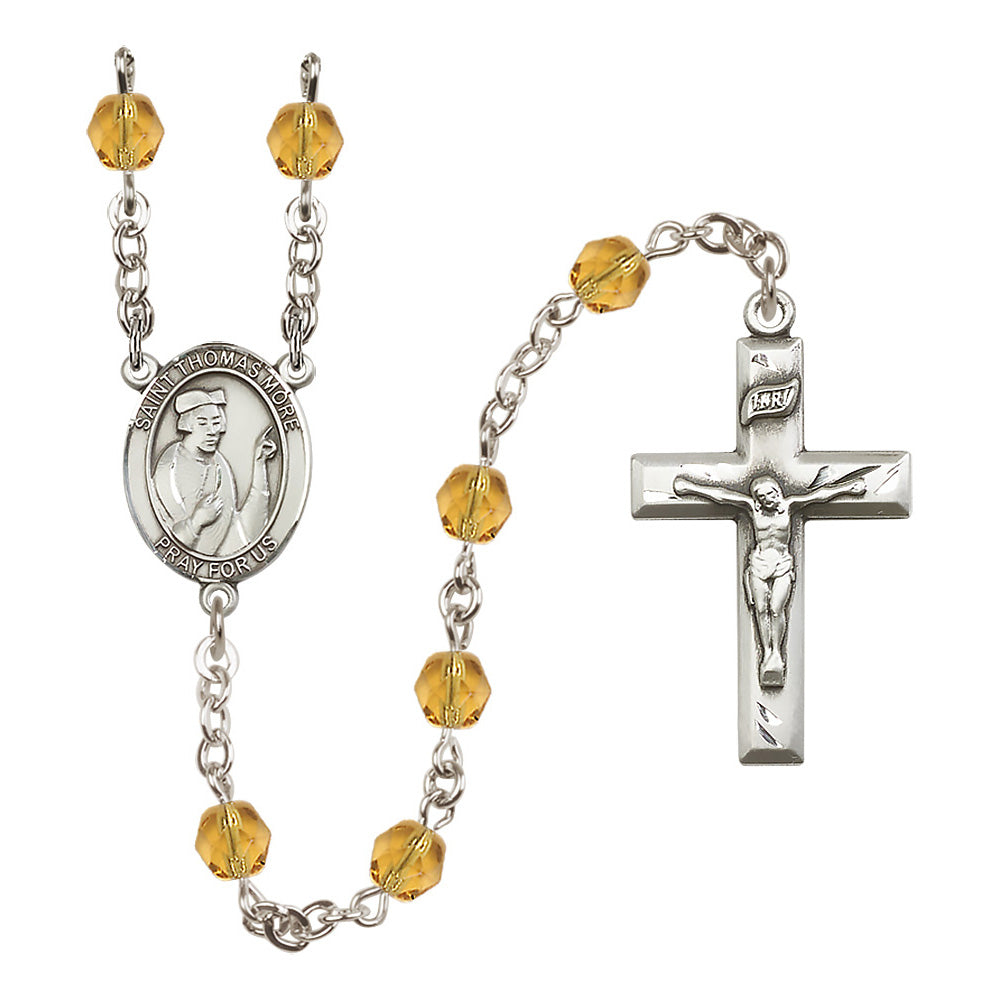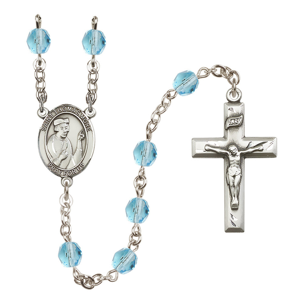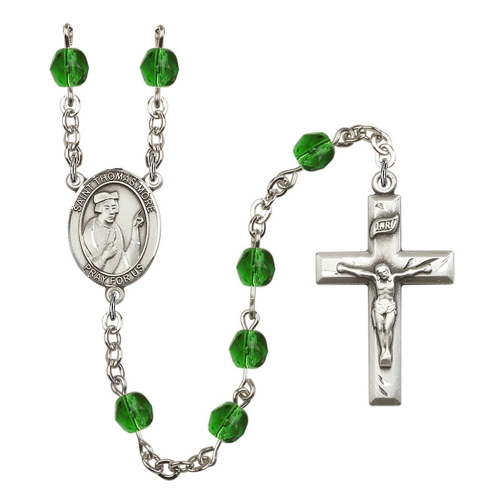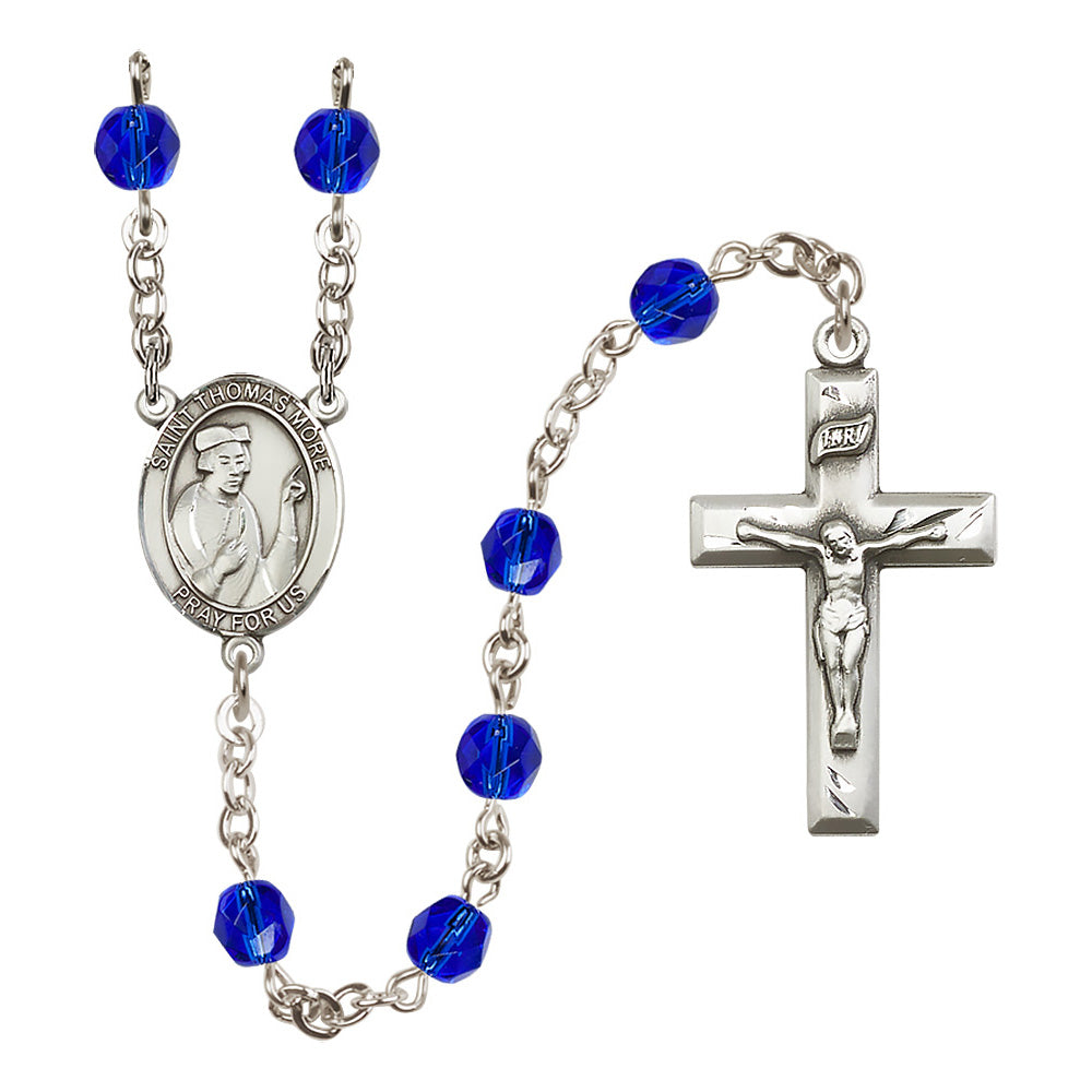 The St. Thomas More Crystal Birthstone Rosary offers a personalized and elegant gift for anyone devoted to this patron saint, particularly lawyers and statesmen. With hand-made craftsmanship in the U.S.A., it features 6mm Czech fire polished beads in your choice of birthstone crystal colors, a bright pewter medal, and rhodium-plated wire to prevent tarnishing. Each rosary is a feminine expression of faith and beauty.