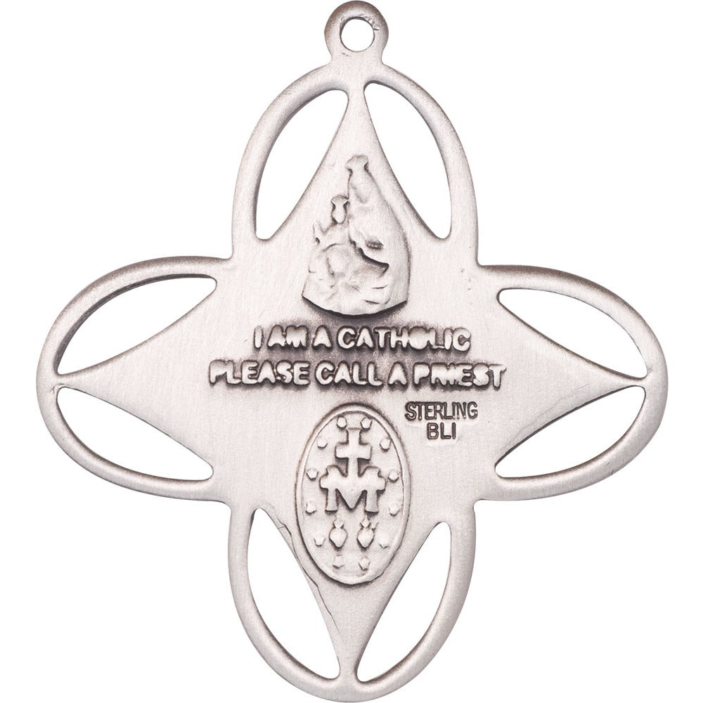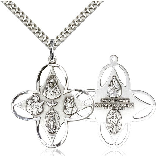 This Sterling Silver 4-Way Pendant offers a timeless and elegant design on a 24" light rhodium heavy curb chain. Measuring 1 1/4 x 1 1/8 inches, it's handcrafted in the U.S.A. and guaranteed not to tarnish, making it a durable and meaningful accessory for everyday wear.