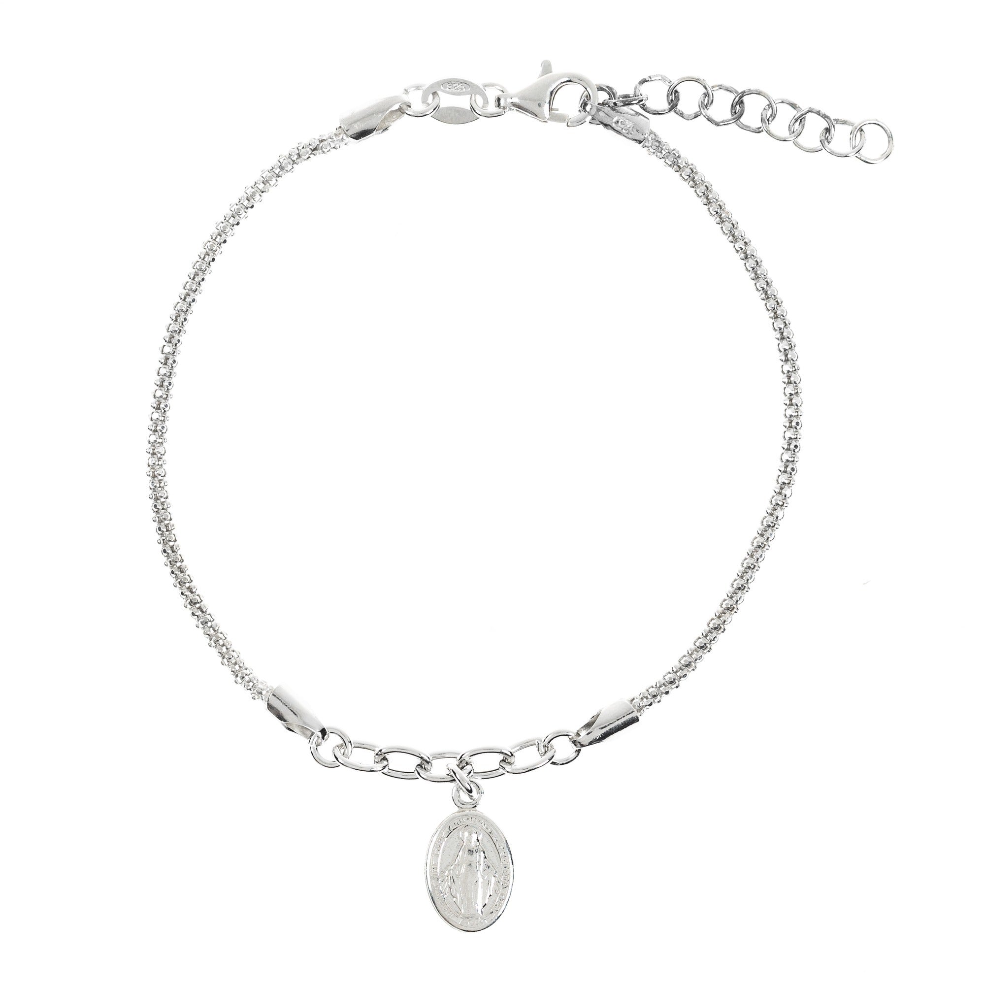 This elegant sterling silver chain features a petite miraculous medal charm at its center. It is stunning as a solo piece, or a lovely complement to other pieces of jewelry. The unique style of chain adds a special touch. Makes a simple, timeless gift for women of all ages.