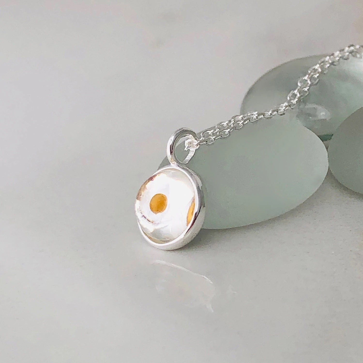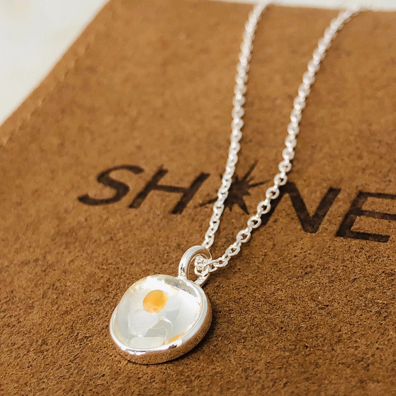 • Enclosed in a glass pendant