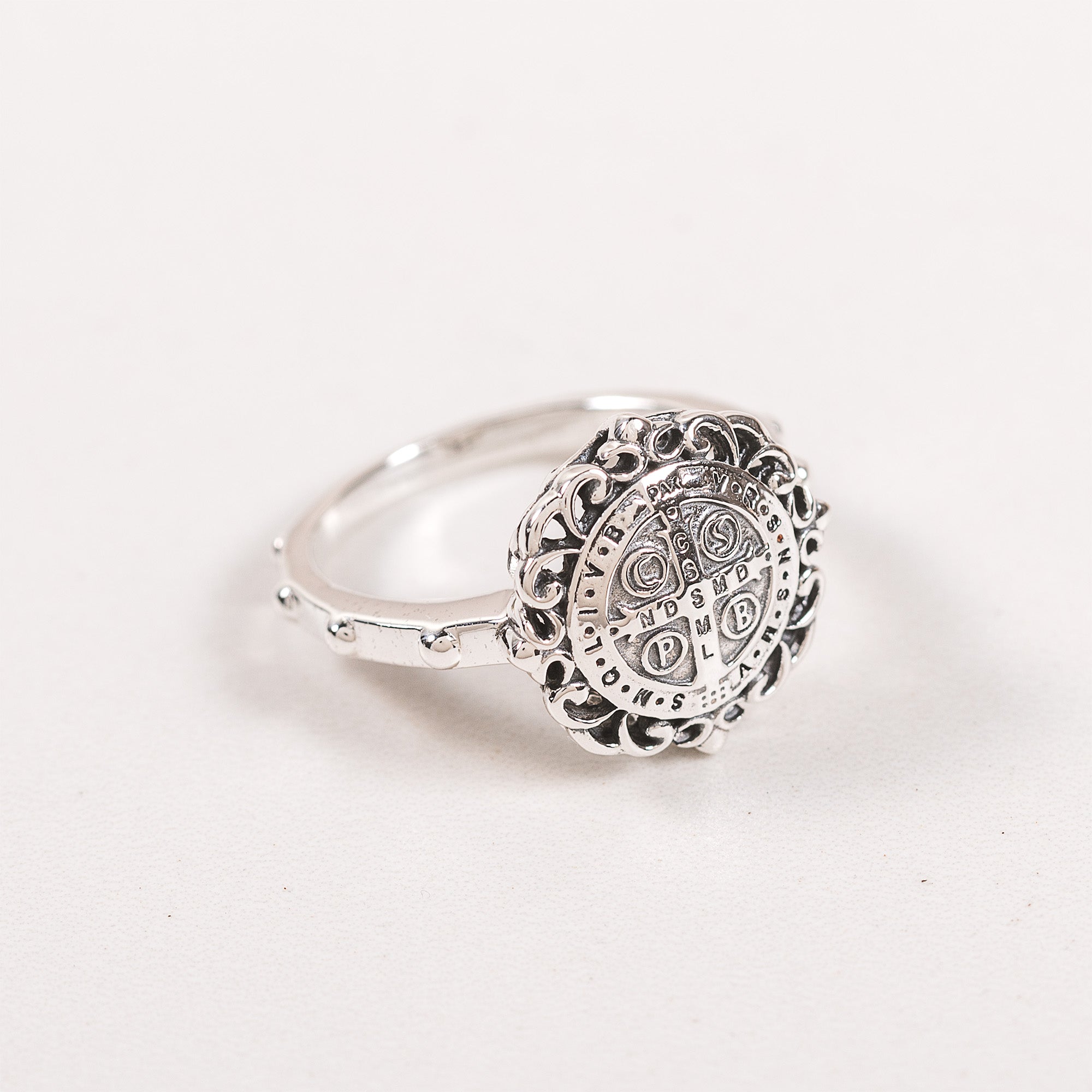 Sterling Silver St. Benedict Filigree Rosary Ring