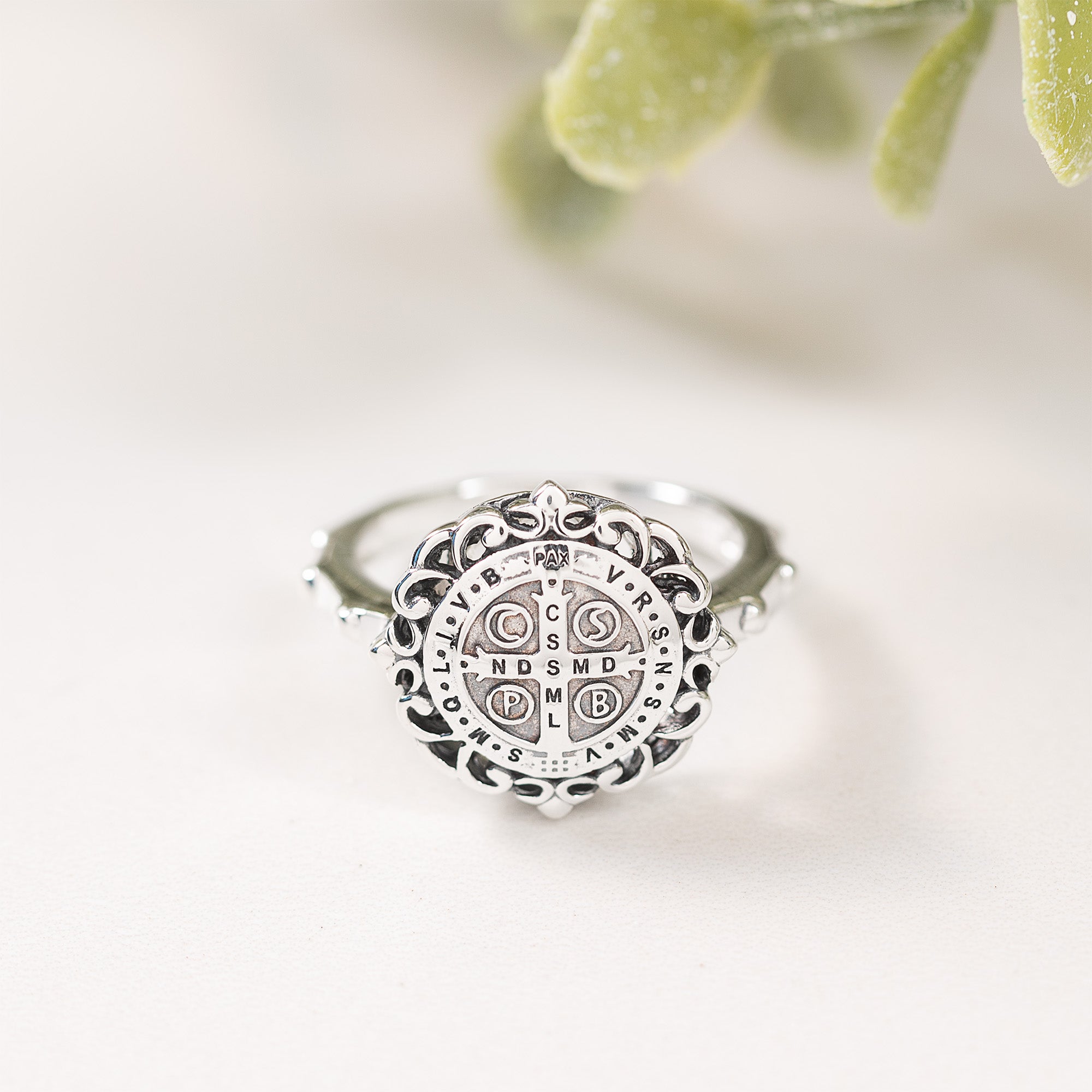 - Our exclusive custom-designed St. Benedict Medal Rosary Ring
