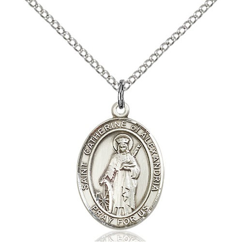 Sterling Silver St. Catherine of Alexandria Pendant on a Sterling Silver Lite Curb, 18" Chain with clasp. Size: 3/4 x 1/2 inches, Patronage: Librarians/Lawyers