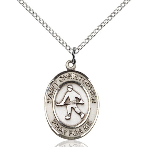 This sterling silver St. Christopher / Field Hockey medal beautifully combines faith and athletics. Handcrafted by U.S. artisans and guaranteed for life, it features patronage for travelers and motorists. Measuring 3/4 x 1/2 inches, it comes with an 18" sterling silver lite curb chain. A timeless gift, it’s guaranteed not to tarnish and makes a thoughtful selection for any faithful athlete.