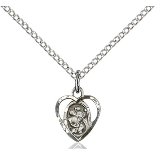 This elegant Sterling Silver St. Christopher Pendant is perfect for travelers and motorists. It comes with an 18" lite curb chain with a clasp and measures 3/8 x 1/4 inches. Hand-made in the U.S.A., it's guaranteed not to tarnish, making it a lasting and stylish expression of faith.