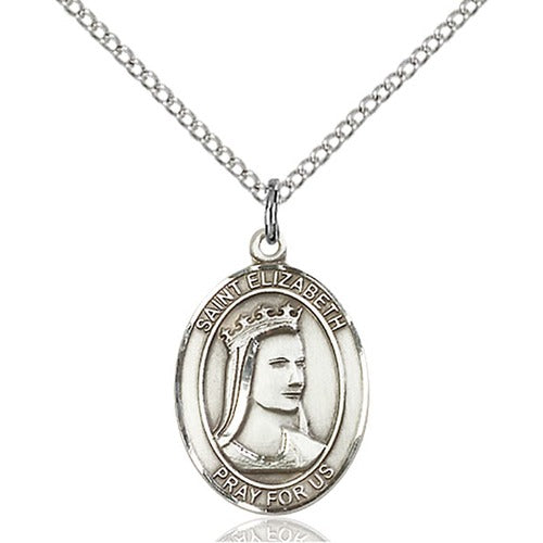 Sterling Silver St. Elizabeth of Hungary Pendant on a Sterling Silver Lite Curb, 18" Chain with clasp. Size: 3/4 x 1/2 inches, Patronage: Bakers/Homeless