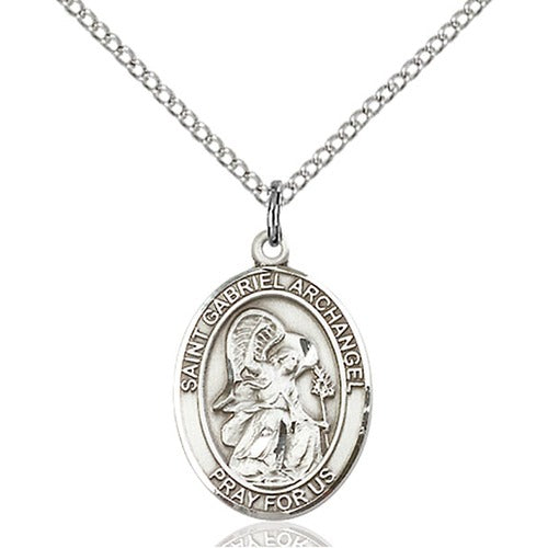 Sterling Silver St. Gabriel the Archangel Pendant on a Sterling Silver Lite Curb, 18" Chain with clasp. Size: 3/4 x 1/2 inches, Patronage: Messengers