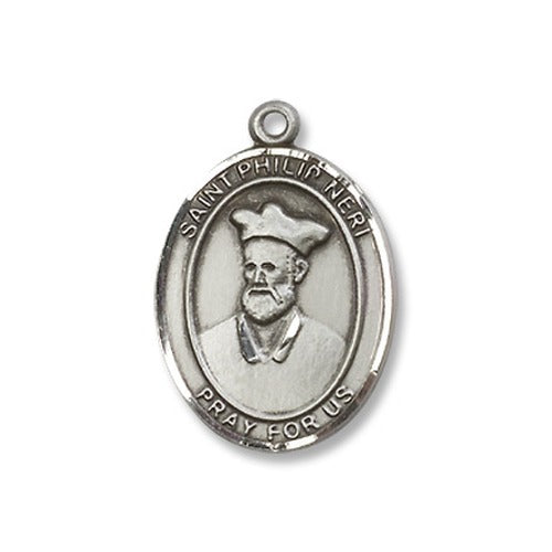 Sterling Silver St. Philip Neri pendant, comes on a sterling silver lite curb chain. The pendant measures 3/4 x 1/2" and comes gift boxed.