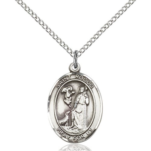 Sterling Silver St. Rocco Pendant on an 18" Sterling Silver Lite Curb Chain. Size: 3/4 x 1/2. Patronage: Birdflu.